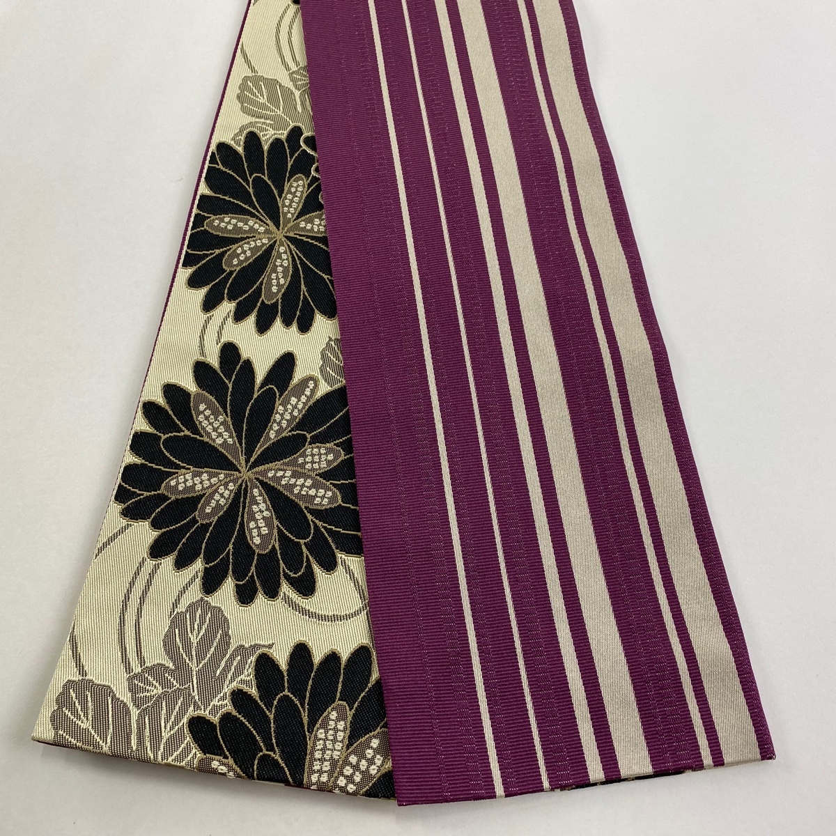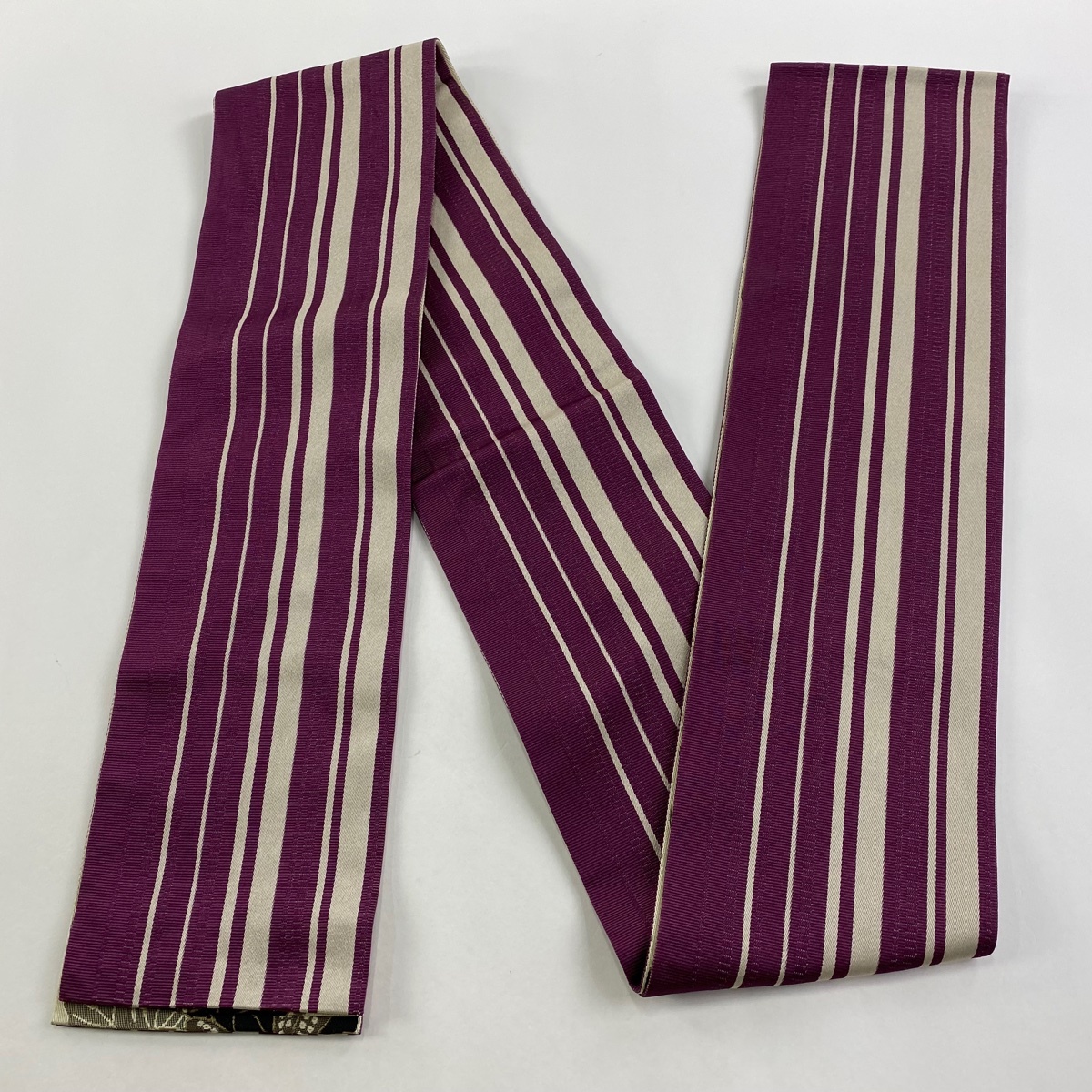 | 半幅帯 優品 縞 紫 化繊 【中古】 |