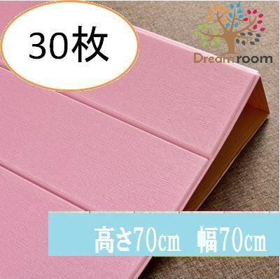 【30枚】高品質 3D クッション 壁紙シール 木目 ピンク 糊付き はがせる クロス 70×70cm アンティーク 耐水 抗菌 落書き 傷防止
