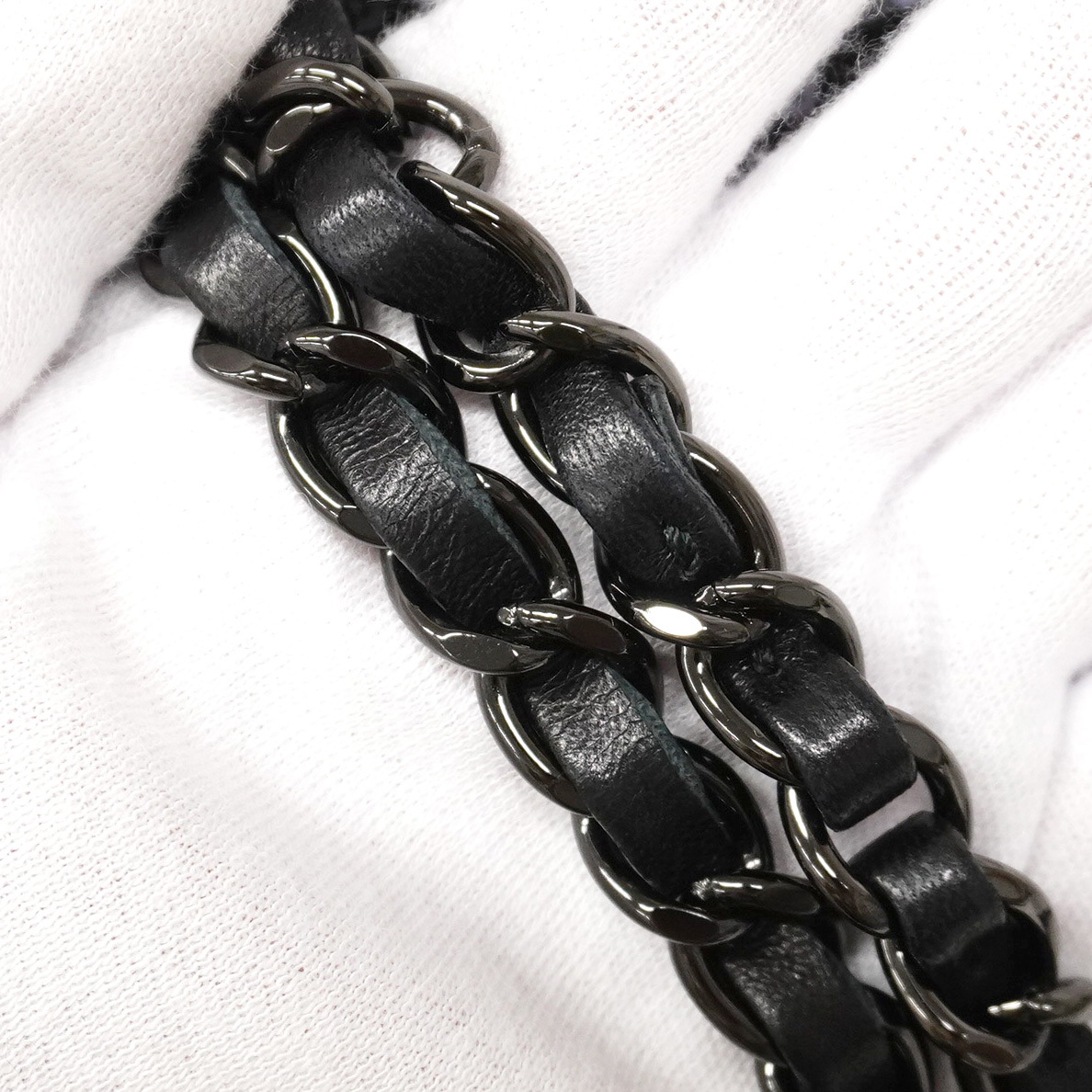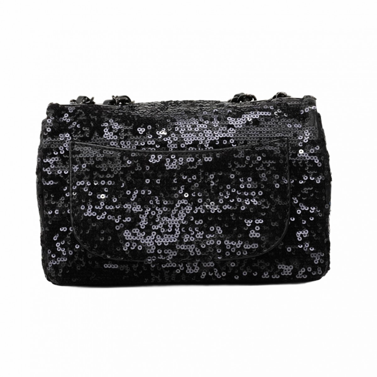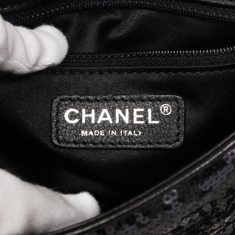 【5mc2510-h】シャネル ショルダーバッグ ミニマトラッセ Wチェーン ラムスキン スパンコール ブラック【中古】レディース
