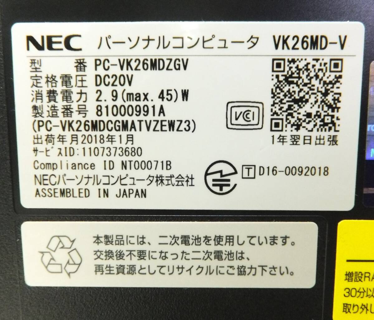 | NEC VersaPro PC-VK26MDZGV VK26MD-V Core(TM) i5-7300U 2.600GHz 8GB ノートパソコン 中古 ジャンク | |