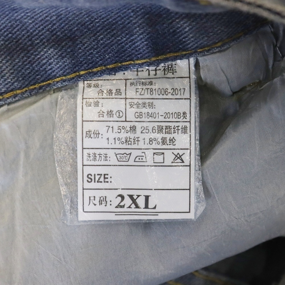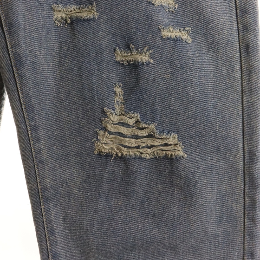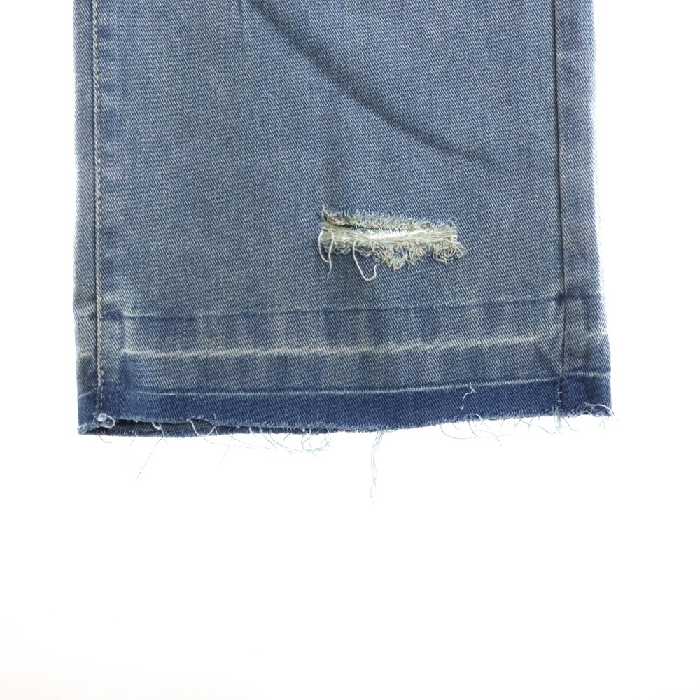 NO BRAND ノーブランド カットオフ加工 ストレートワイドダメージデニムパンツ インディゴ