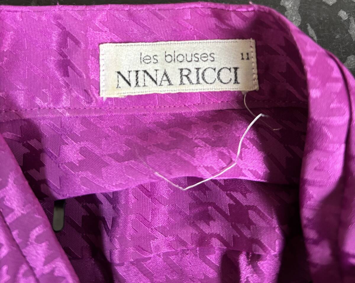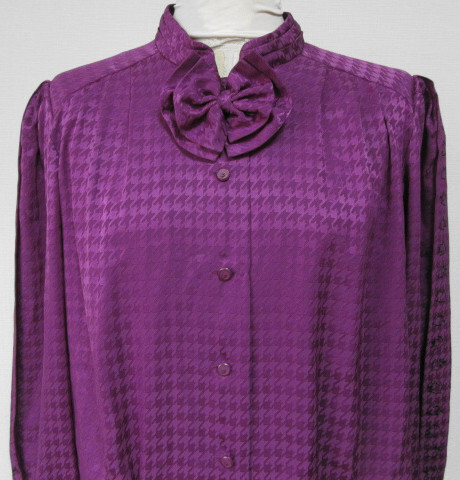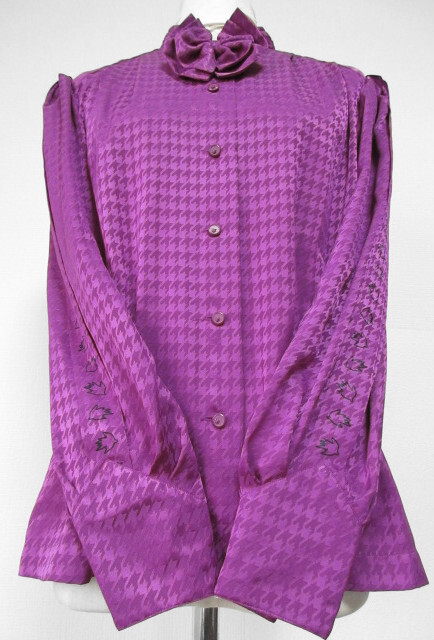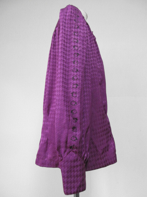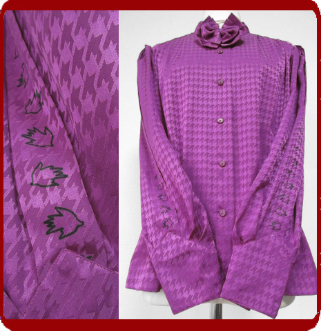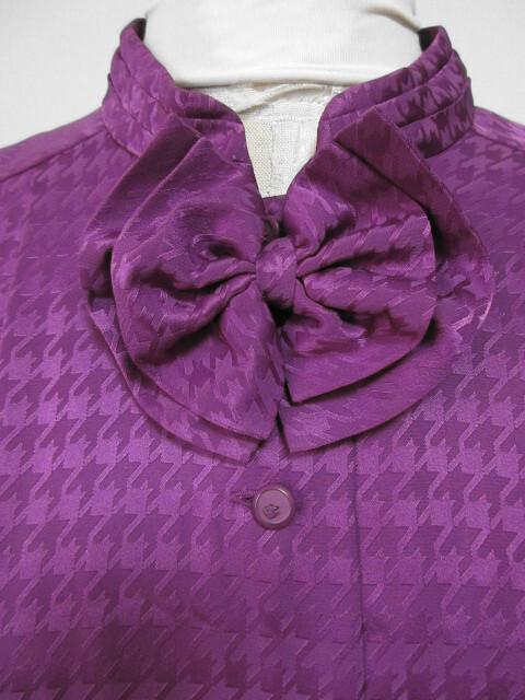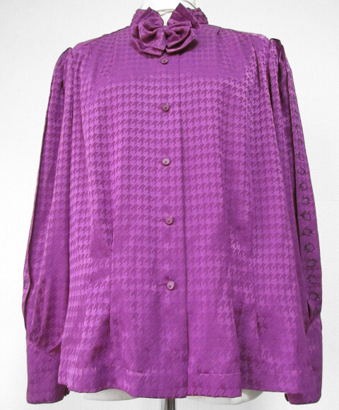 古着♪レトロ・Vintageニナリッチ紫千鳥格子ブラウス♪70s60s70年代60年代80年代ヴィンテージアンティーク昭和モダン長袖衣装式個性的即決