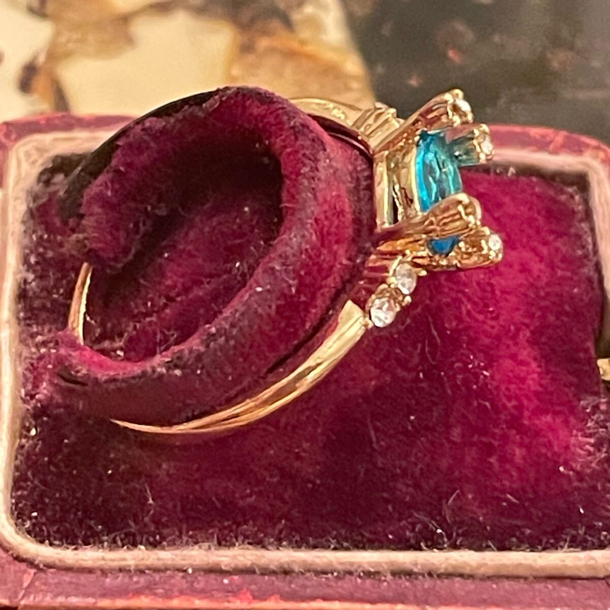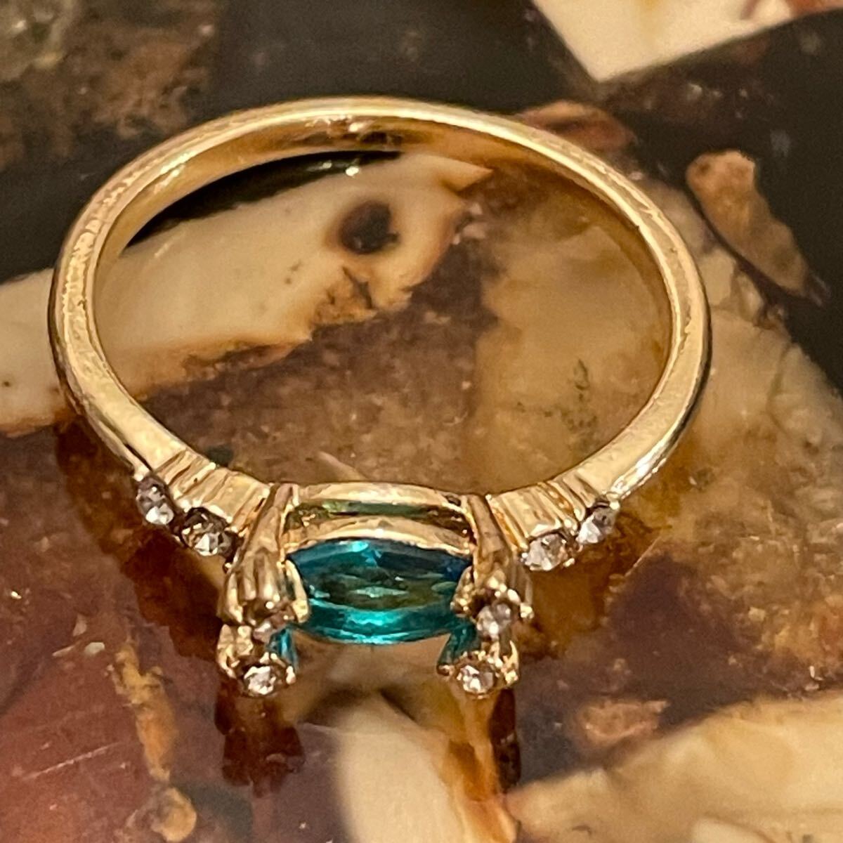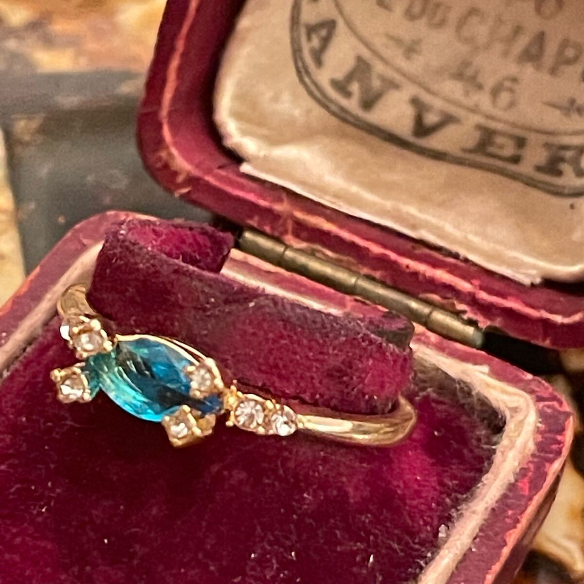 イギリス 英国 ヴィンテージ ターコイズブルー 水色 リング 指輪 16.5号 青 金色 ゴールド 蚤の市 ブロカント ビンテージ アンティーク