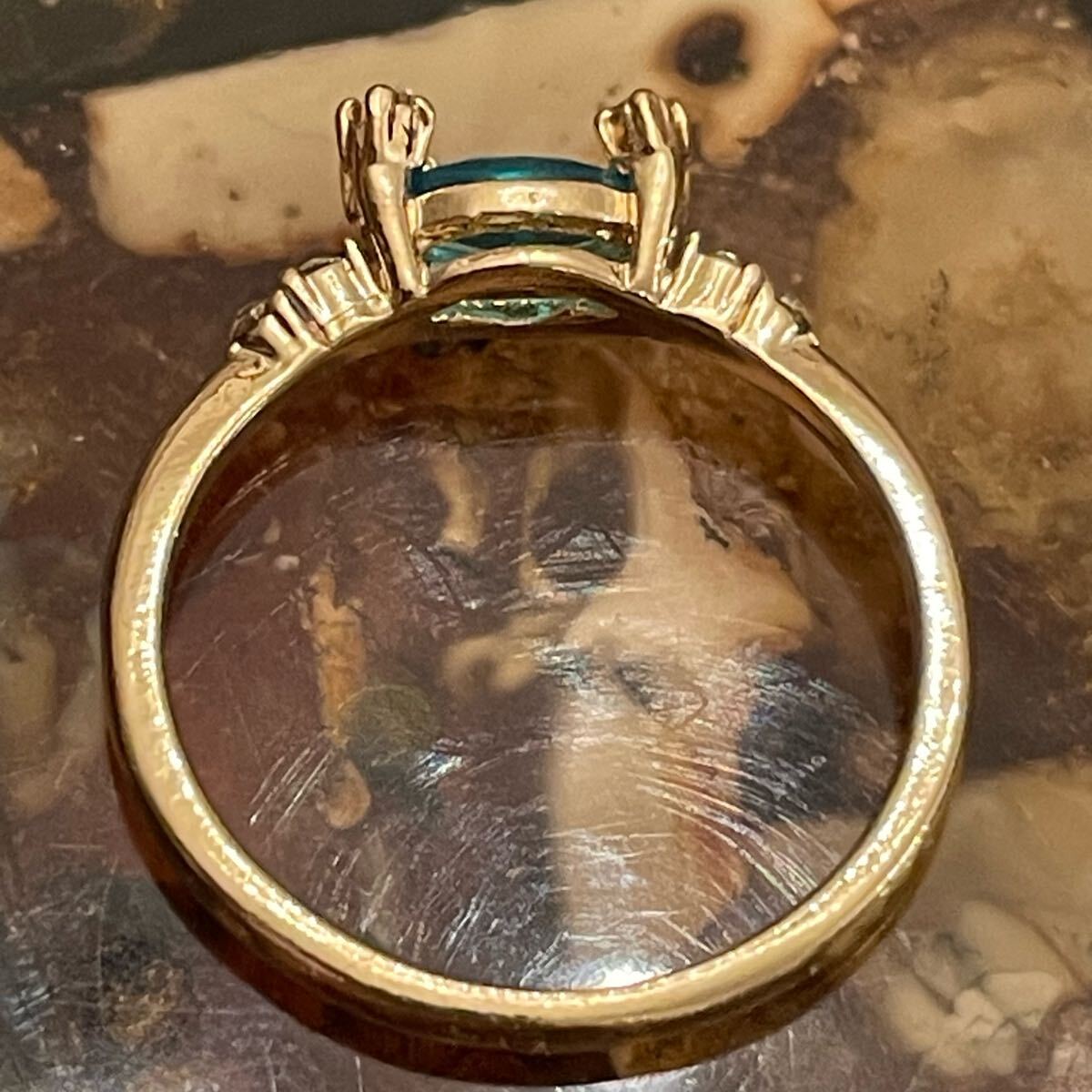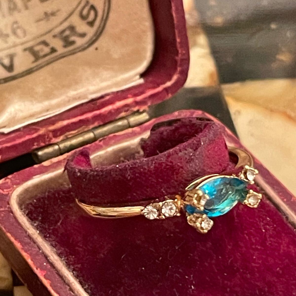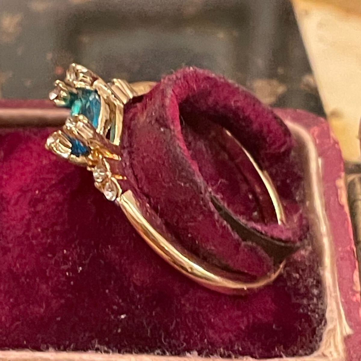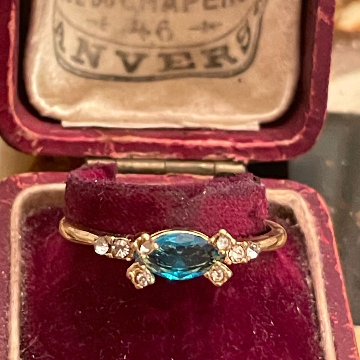 イギリス 英国 ヴィンテージ ターコイズブルー 水色 リング 指輪 16.5号 青 金色 ゴールド 蚤の市 ブロカント ビンテージ アンティーク