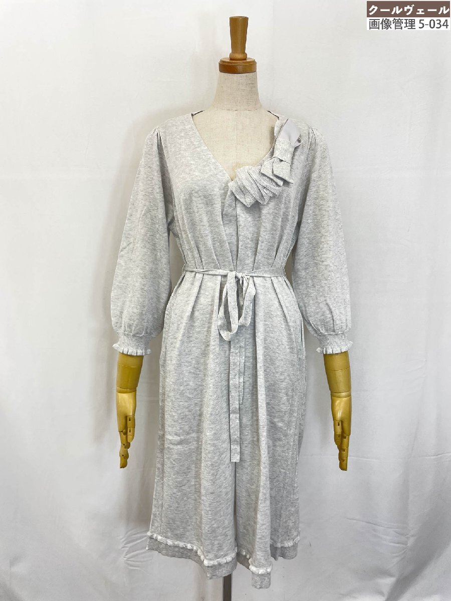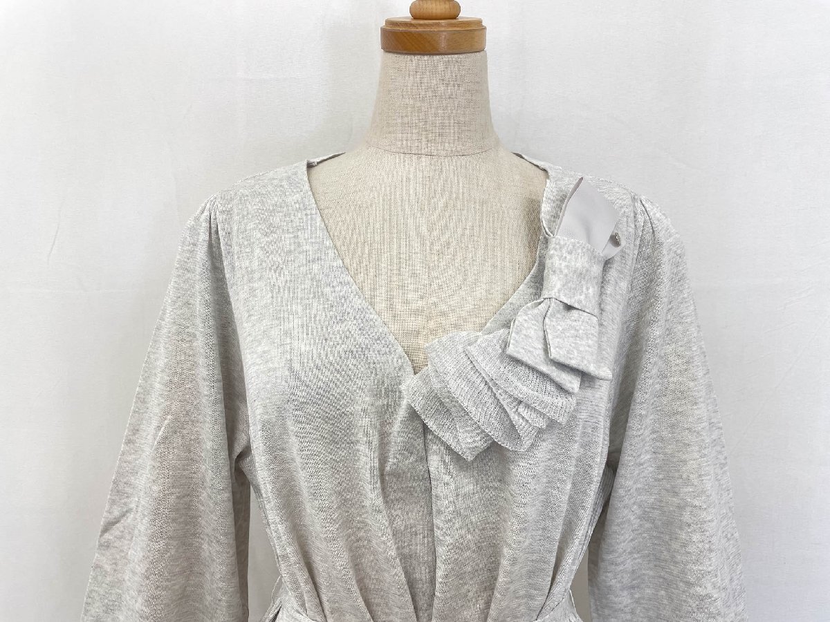 未使用【トゥービーシック】W5F08-741-07 リボンブローチ ベルト付 ハイゲージ ロングニットカーディガン(レディース)40 グレー◇17LN6125