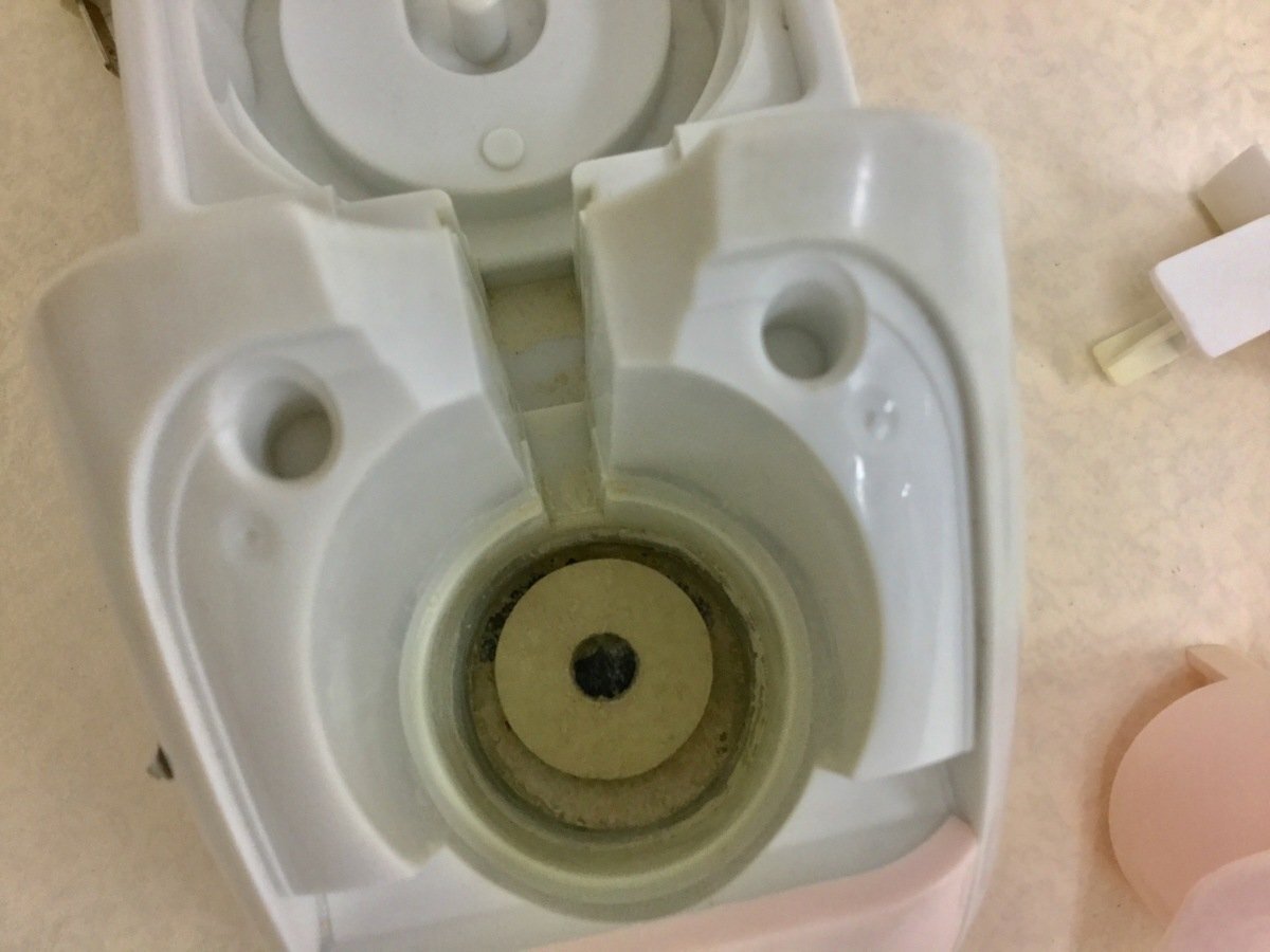 | 商品説明 机などに置けるコンパクトタイプ、水量が見やすいクリア水タンク、 お手入れしやすいフッ素加工の蒸発皿です。 詳細 ●サイズ:幅 8㎝ 奥行き 22㎝ 高さ 8㎝ ●カラー:ピンク ●動 作:通電のみ確認済み ●ランク:Dランク ●コンディション:中にカルキの汚れ等、使用感がございます。 |