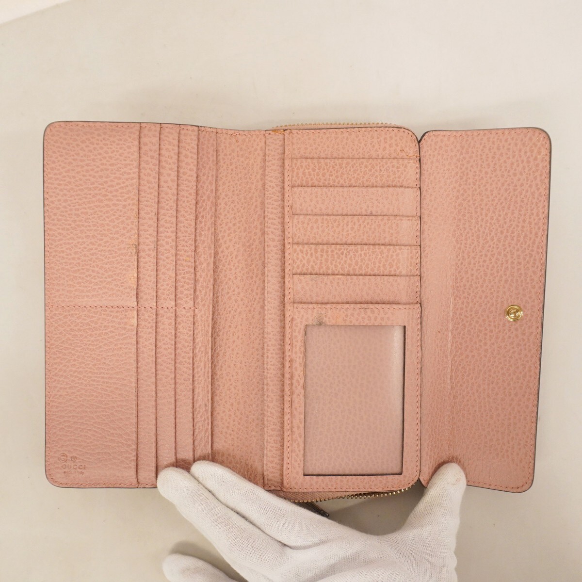 ★SALE【5ie6255-h】グッチ 三つ折り長財布 インターロッキングG 449397 レザー ピンク ゴールド金具【中古】レディース