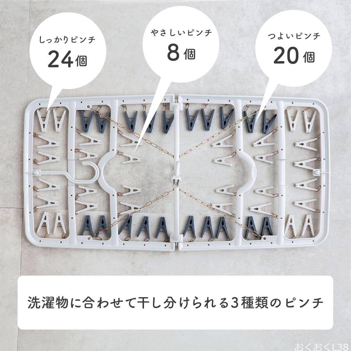 ダイヤ フランドリー 洗濯ハンガー 衣類に跡が付かない干し分け角ハンガー 52ピンチ WT/GY 横80cm×縦41.4cm×高さ