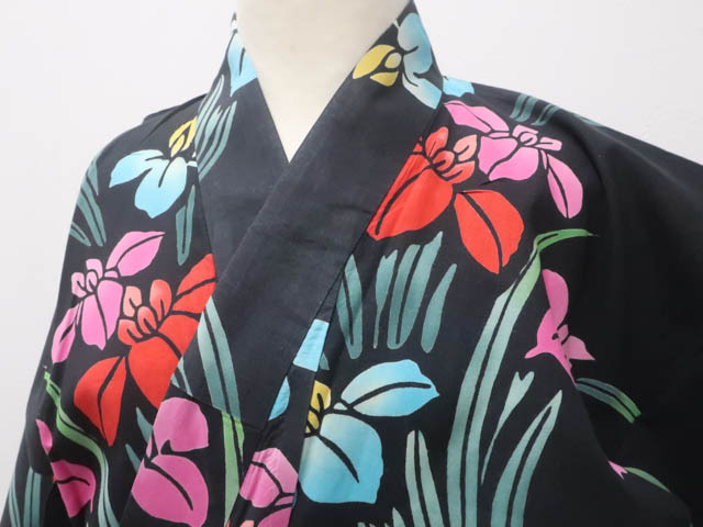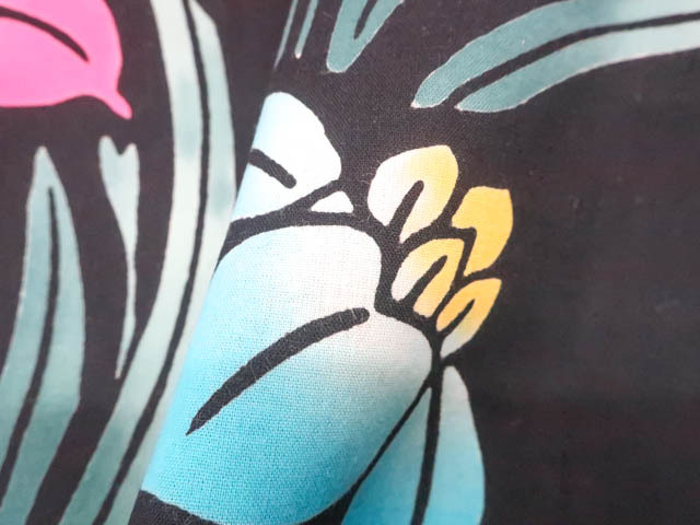 リサイクル商品のため、衿スレ、小傷がございますがご着用いただけると存じます。 地色は黒です。 1枚目の画像が近いお色かと思われます。 素材は綿です。 |