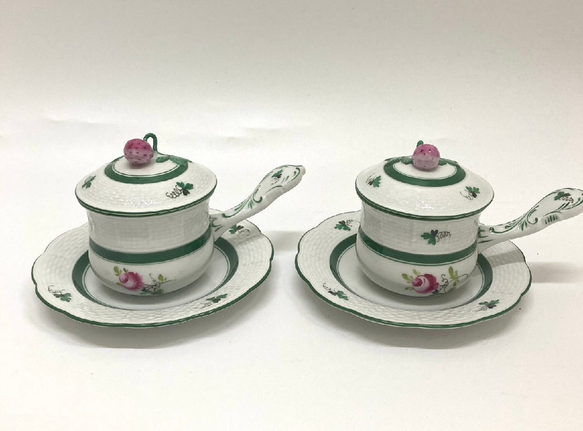 HEREND ヘレンド ウィーンの薔薇 タートルスープカップ 蓋 取っ手付き 2客セット