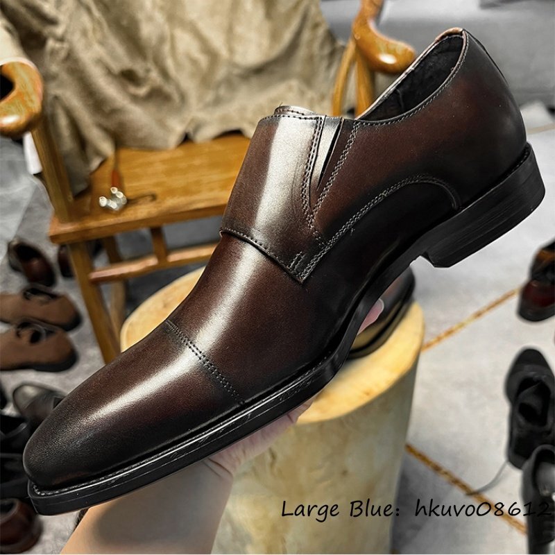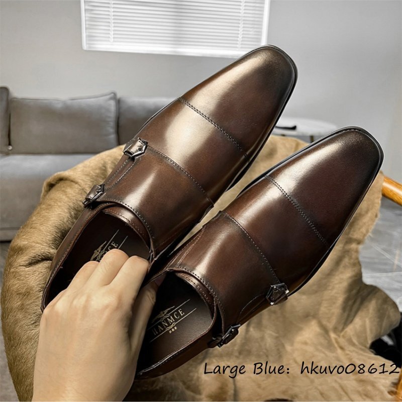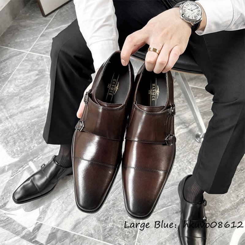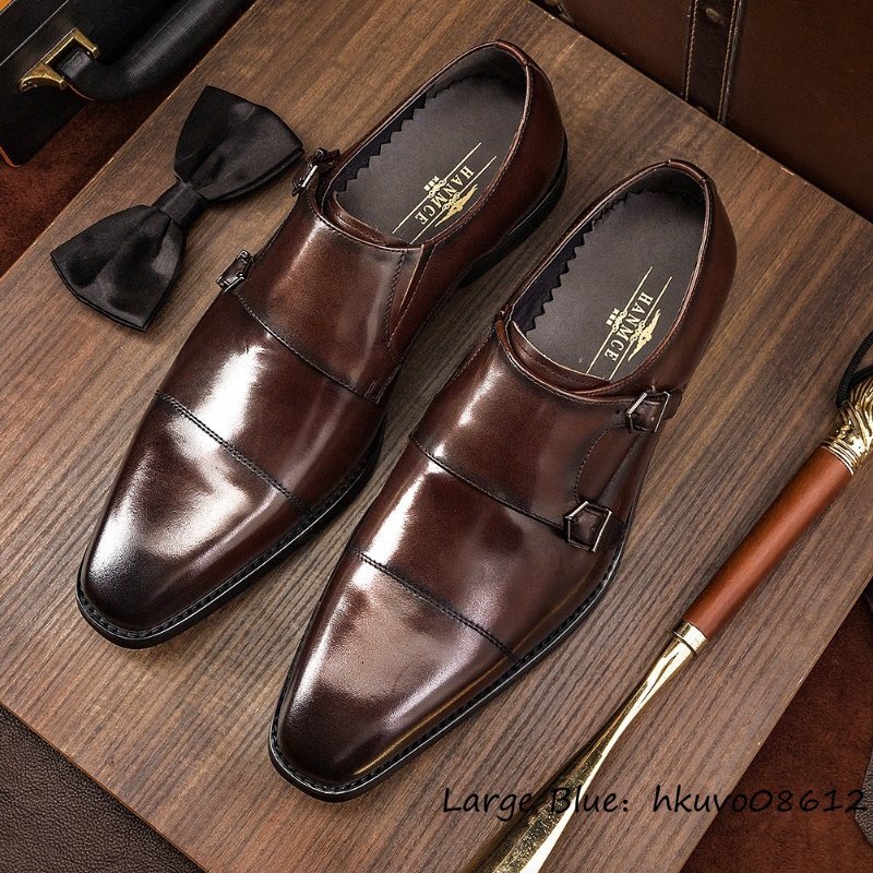 最高級◆本革 ビジネスシューズ 職人手作り ダブルモンクストラップ レザーシューズ 天然牛革 紳士 革靴フォーマル 新品 ブラウン 24.5cm