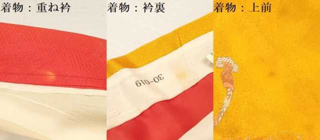 | 着物【化繊・重ね衿:取り外し可能】の状態は接写画像のように 重ね衿・上前に薄い汚れがございますが その他特に目立ったシミ汚れなどもなく大変良い状態です。 長襦袢【化繊】の状態は 特に目立ったシミ汚れなどもなく大変良い状態です。 ぜひお手入れをされてお召しになられてはいかがでしょうか。 お安く出品致しますので、是非この機会にいかがでしょうか? ※着物衿裏に印字がございます。 ※素材の詳細は画像を御覧ください。