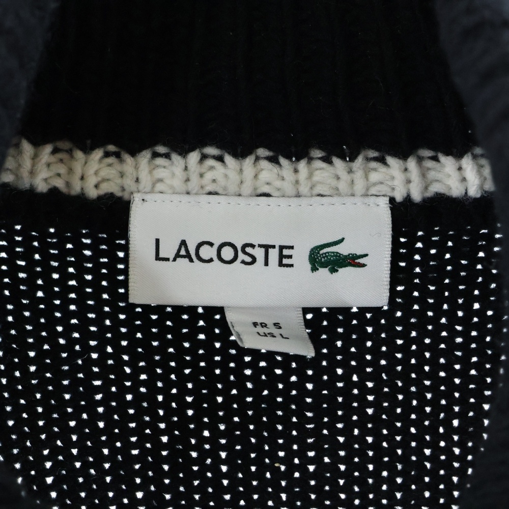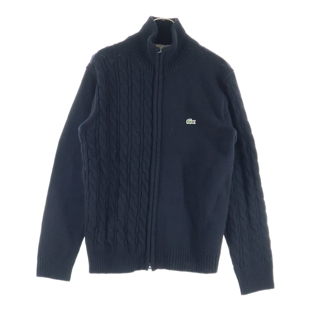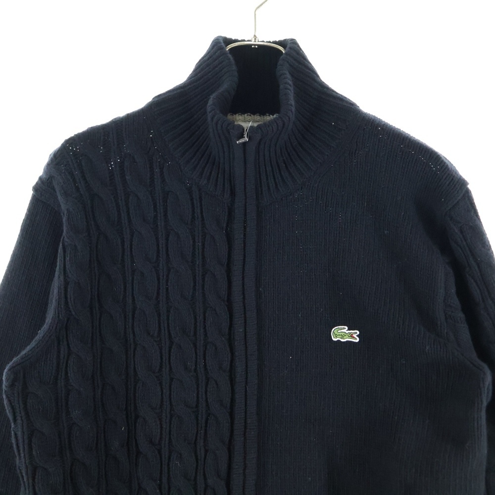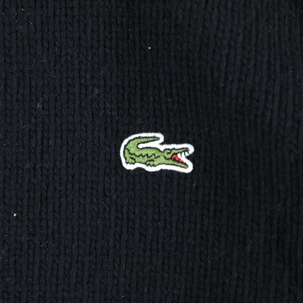 LACOSTE ラコステ ワンポイントロゴデザイン クレイジーニッティング ハイネック ジップアップ カーディガン ブラック AH9364