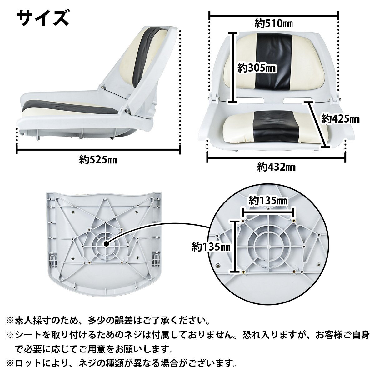 ボートシート 白×紺 ボート 船 イス 椅子 マリン シート 折りたたみ式 釣り クルージング 合成皮革 幅広 スイベル 穴有