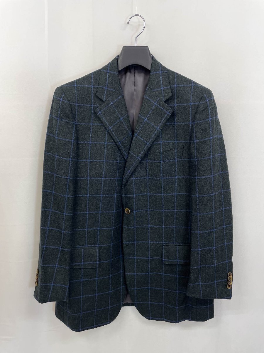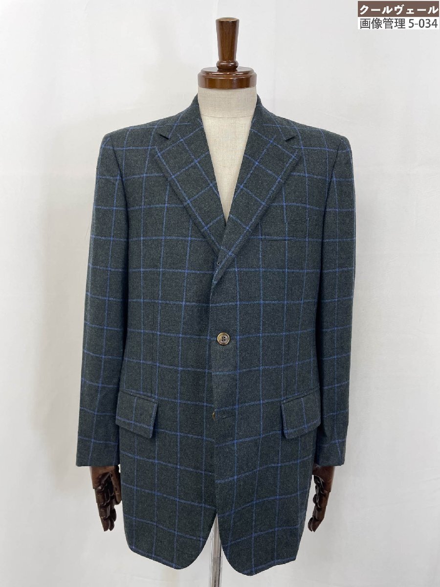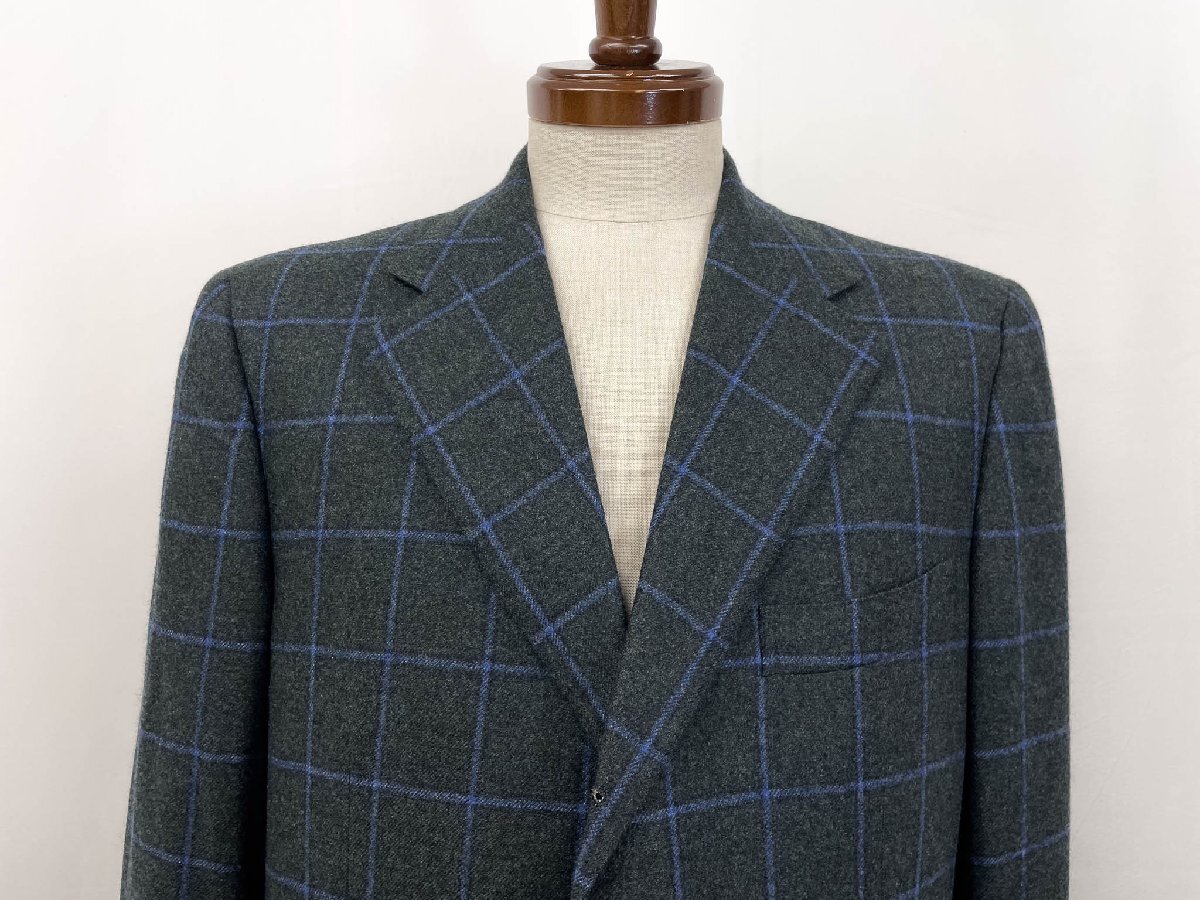 超美品【オーダー品】ドラッパーズ生地 カシミア×絹混 2ボタン 起毛生地 格子柄ジャケット (メンズ) 50相当 グリーン系 ◇17MJ0735◇