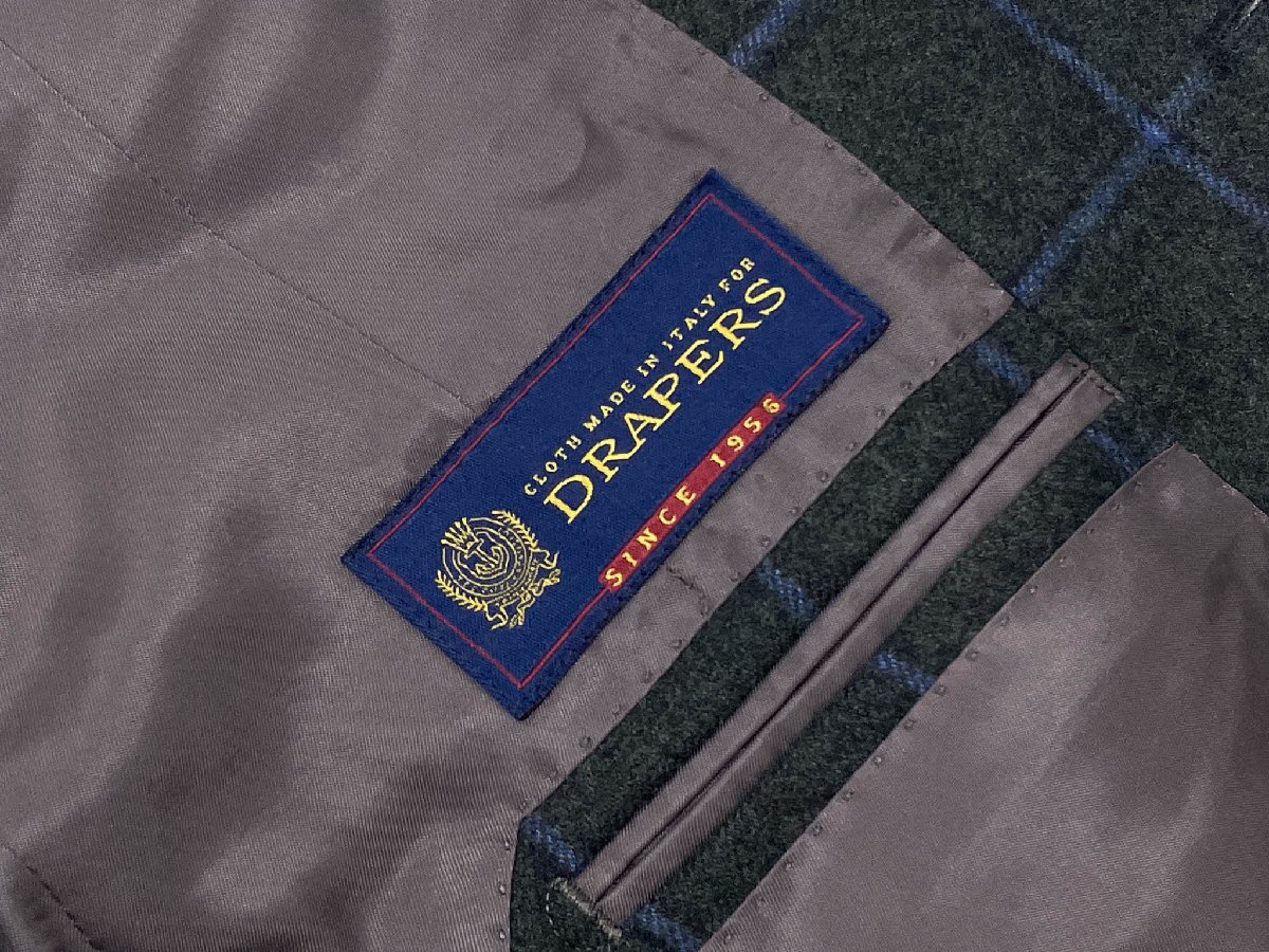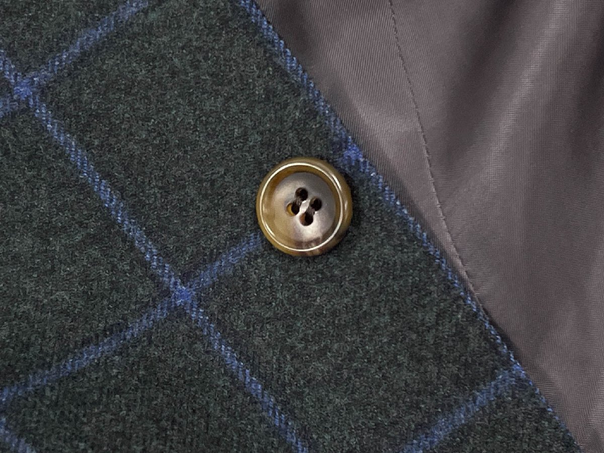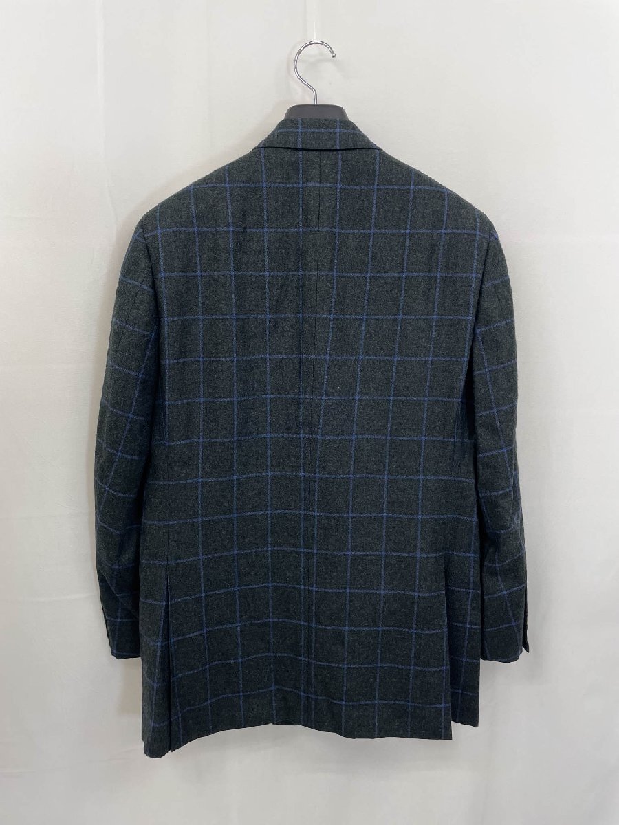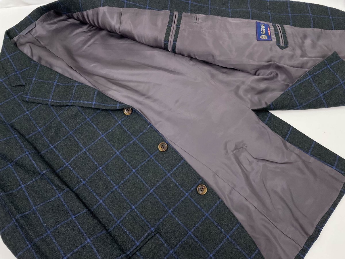超美品【オーダー品】ドラッパーズ生地 カシミア×絹混 2ボタン 起毛生地 格子柄ジャケット (メンズ) 50相当 グリーン系 ◇17MJ0735◇