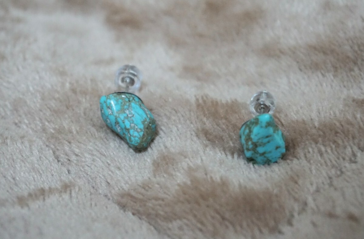 天然石(ラピスラズリ)を使用したピアスです。石の大きさは、おおよそ1×15センチ程度です。