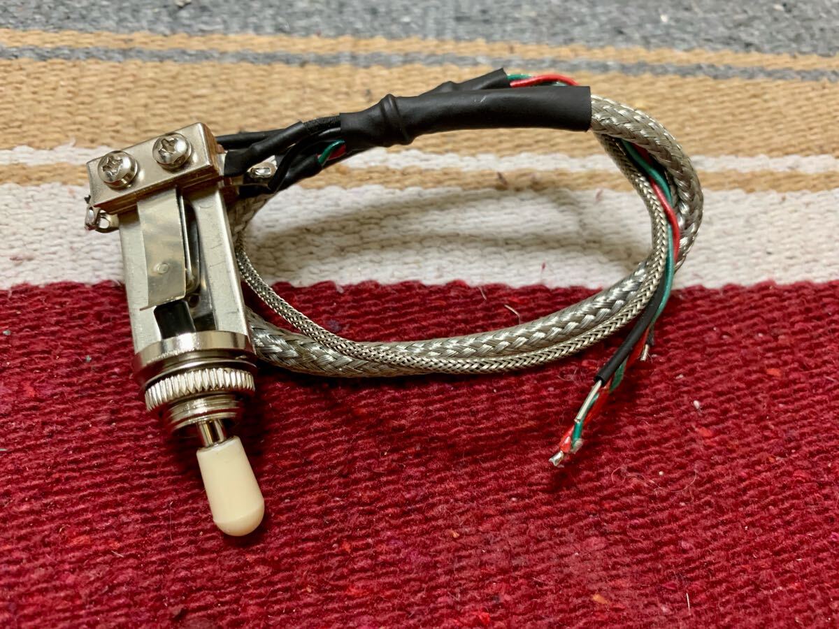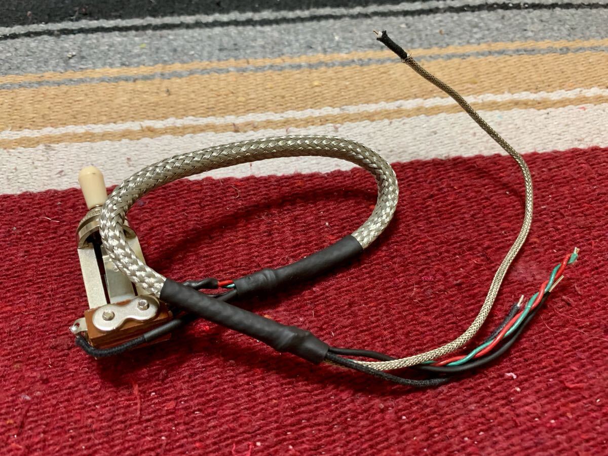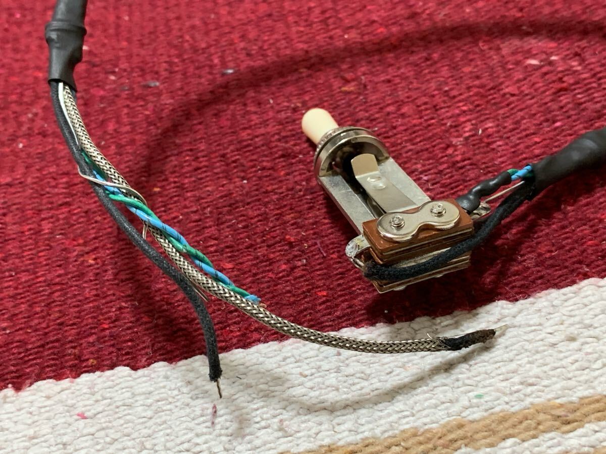 トグルスイッチからジャックまでは特にノイズの影響を受けやすいのでギブソン王道の1芯シールドワイヤーを使用しています。