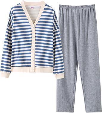 部屋着 レディース ストライプ 前開き ボタン 可愛い 上下セット おしゃれ ジ