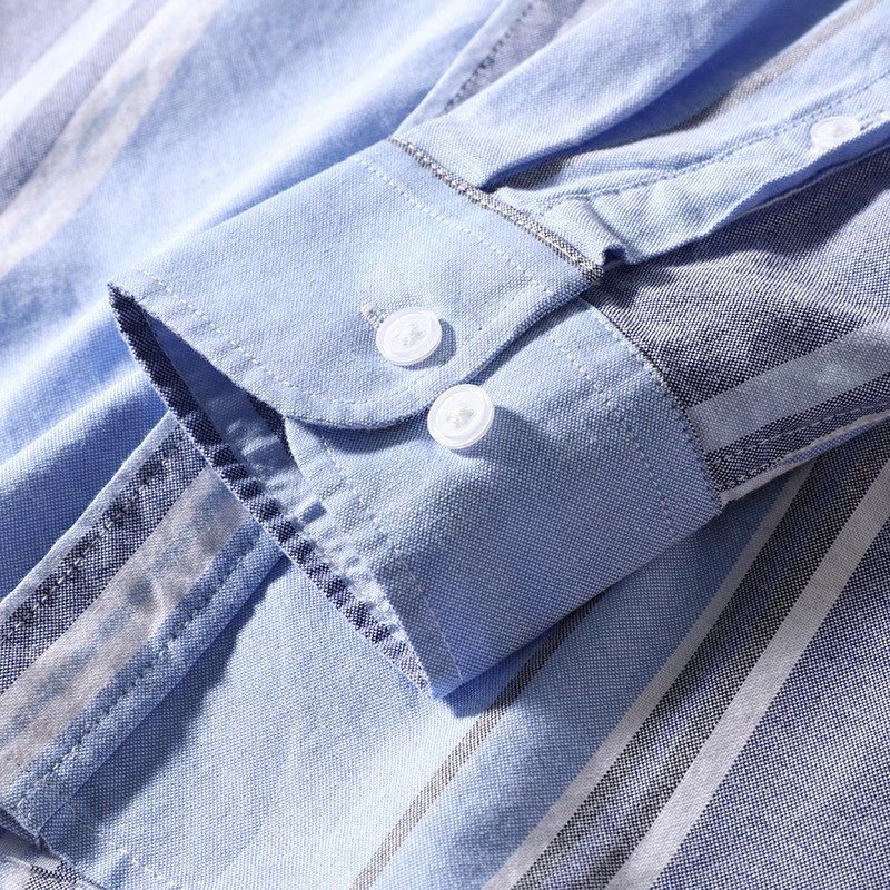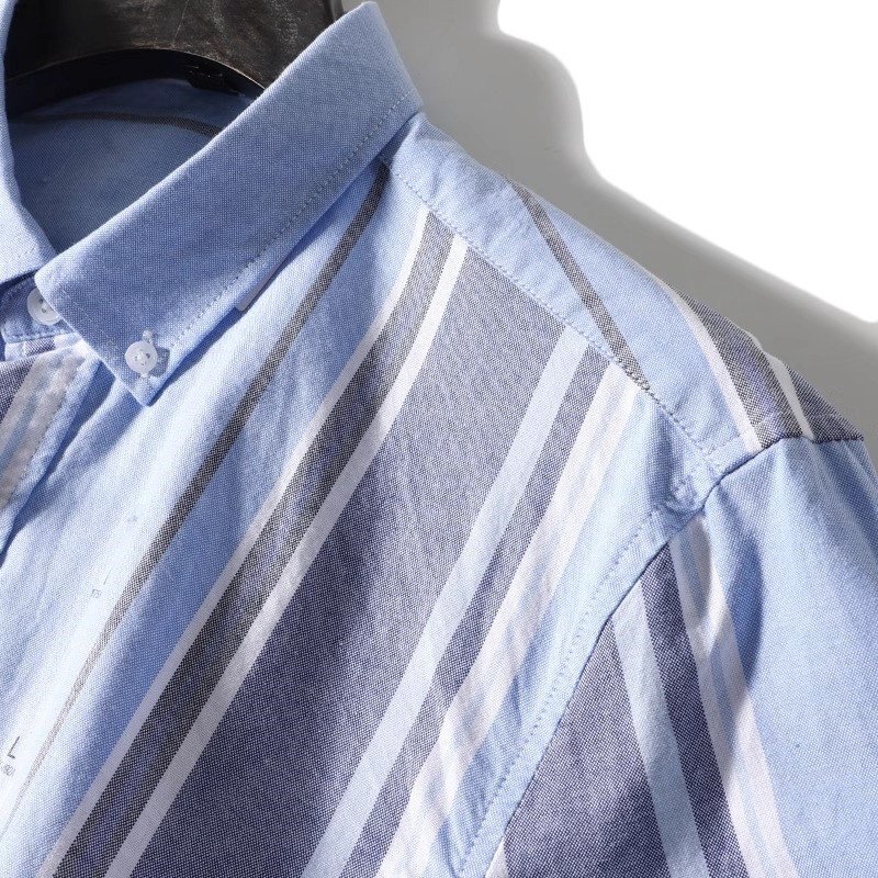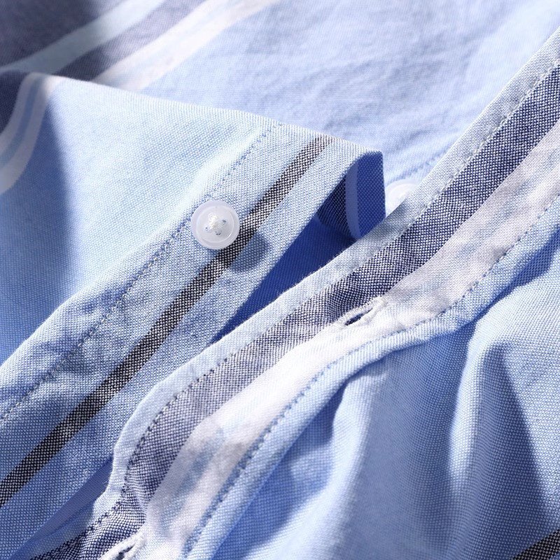 人気モデル!DCKMANY 新品 メンズ長袖シャツ 純綿 オックスフォード 春夏 ストライプ柄 日常 カジュアル/水色T4027-4XL