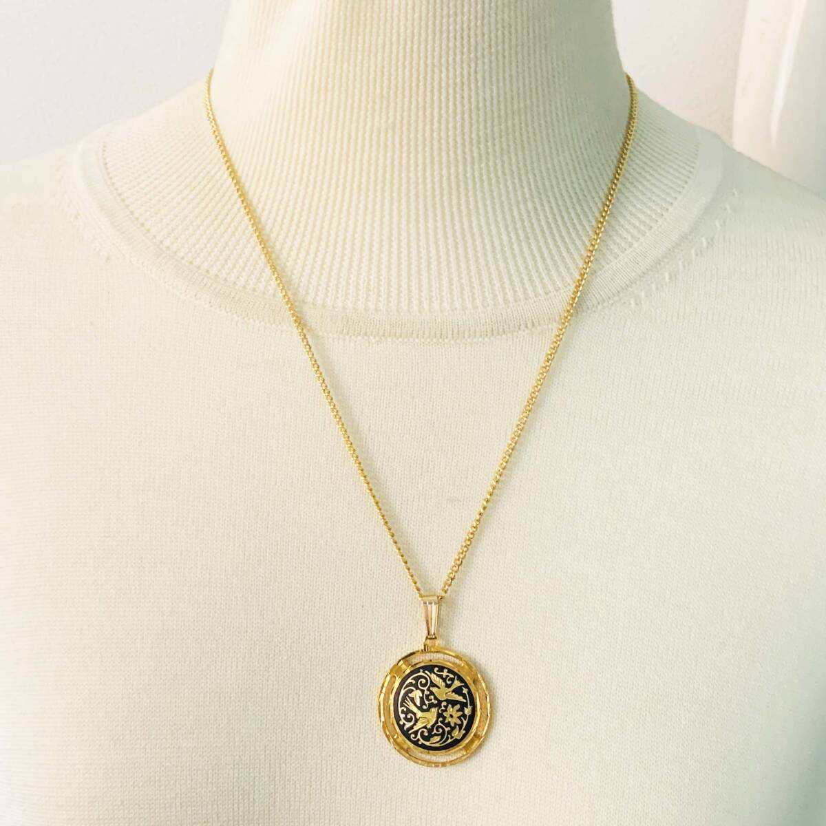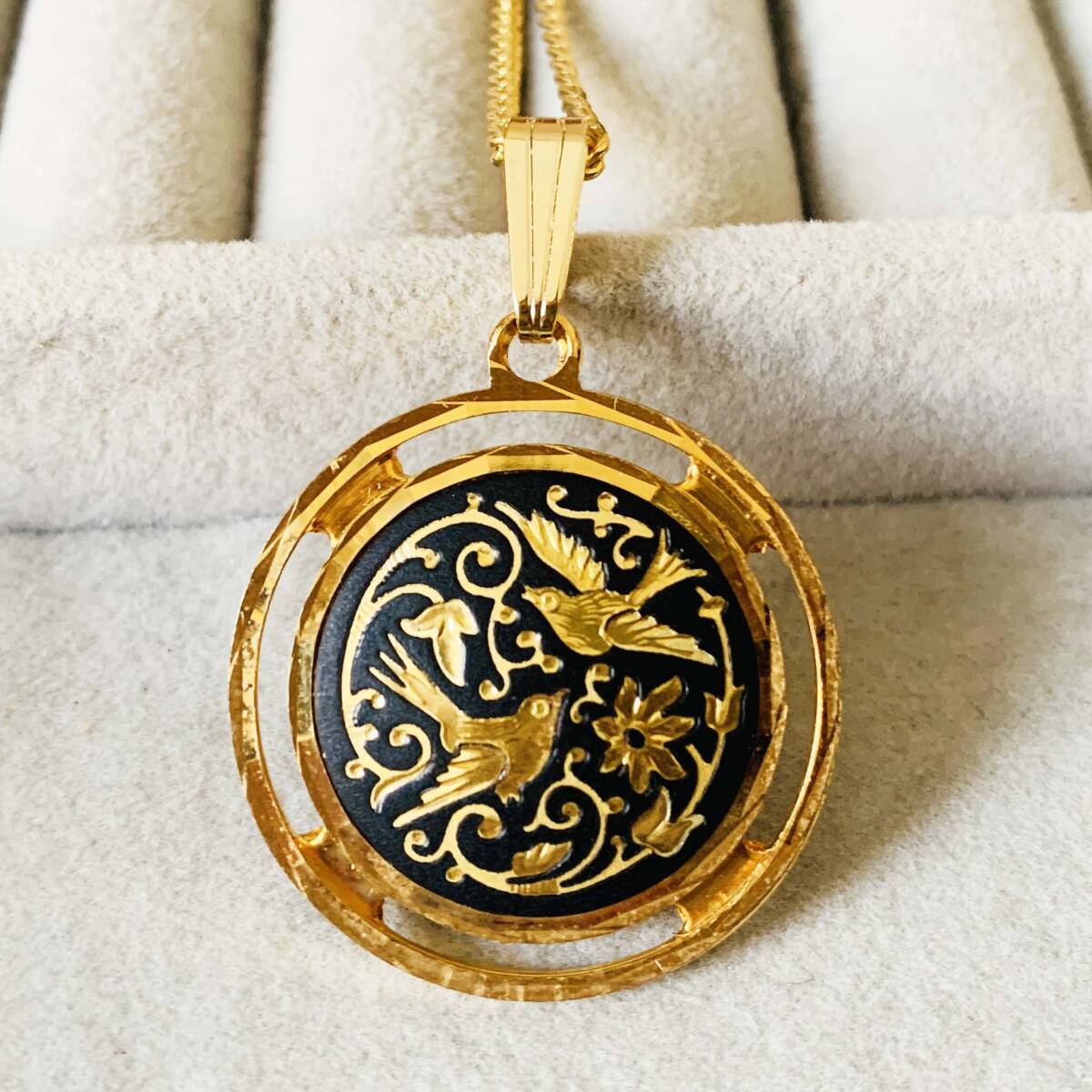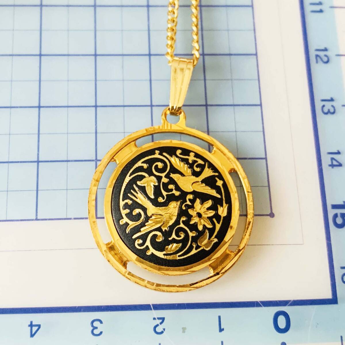 美品 スペイン製 Damasquinad ダマスキナード 鳥と花 純金象嵌 ゴールド ネックレス NO.6089