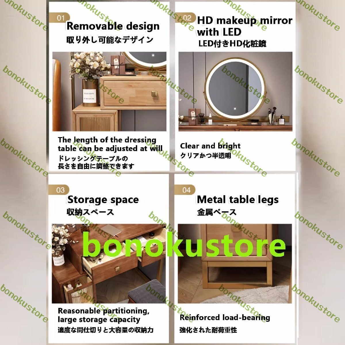 YNAYGDIUGD ドレッサーテーブル 鏡台 ドレッサー 化粧台 コンパクトドレッサー 引き出しと収納コンパートメント付きの化粧台 化粧台 テーブル LEDミラー 小型化粧台 サイド収納 メイク台 鏡台 スツール付き 大容量 収納 おしゃれ ローテーブル 女の子用のモダンな寝室の化粧台