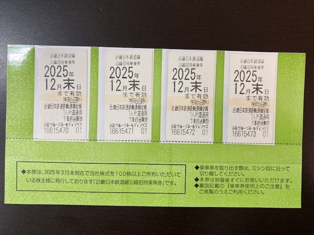 ★送料無料★ 近鉄 株主優待 乗車券 (4枚セット) 期限2025年12月末日まで