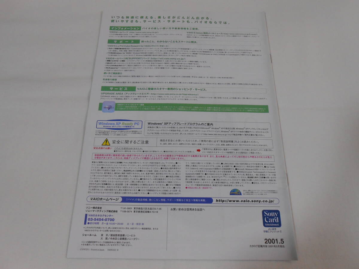 カタログ SONY vaio ソニー バイオ ノートブックコンピューター バイオQR PCG-QR1S/BP バイオノート 2001年5月