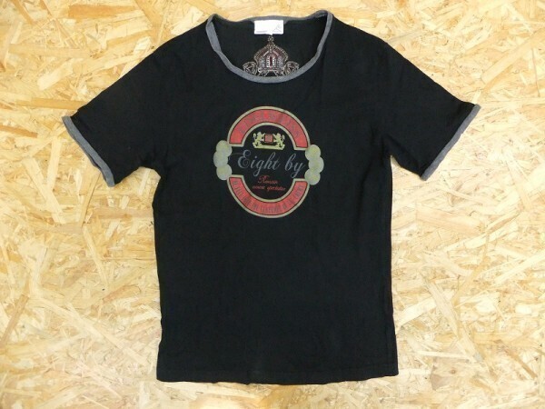 eight エイト レディース eit EIGHT 綿 コットン100% ロゴプリント リンガー トリムTシャツ 黒 2 です。