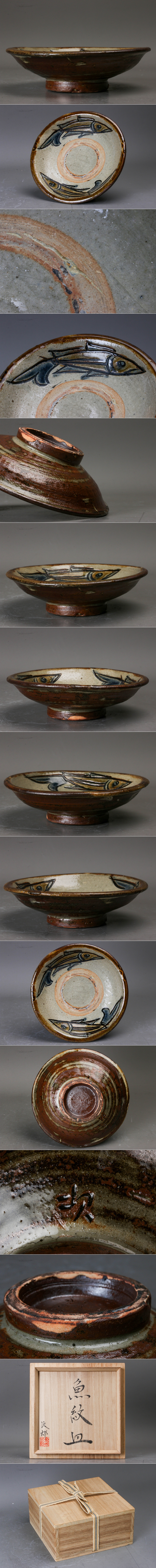 【SAG】人間国宝 金城次郎 壷屋焼 魚文皿 共箱 本物保証