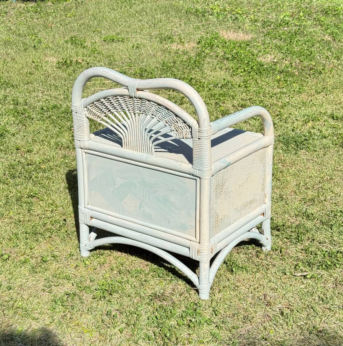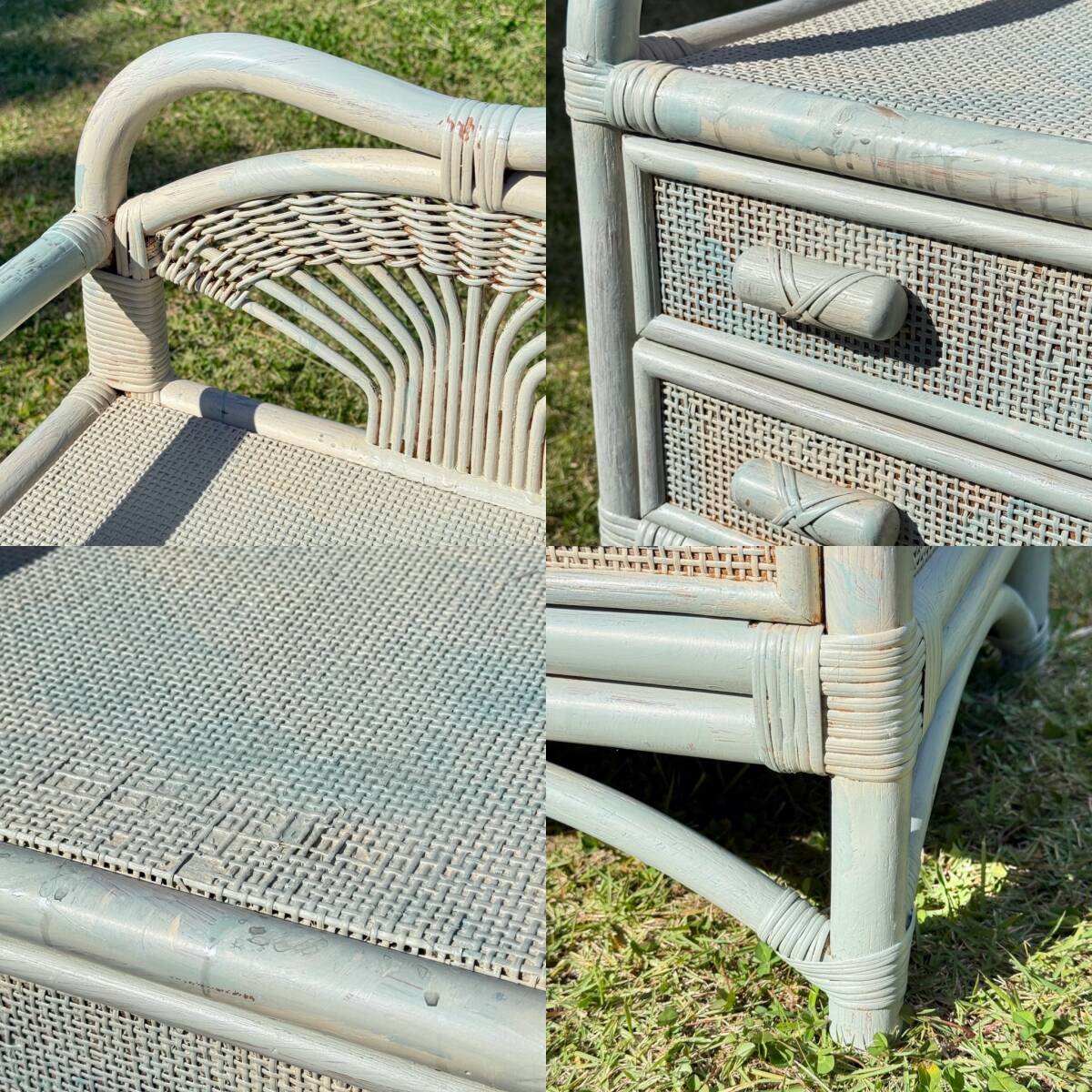 ペイント ペールブルーとホワイト 籐製家具