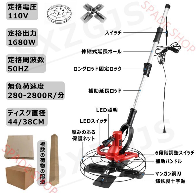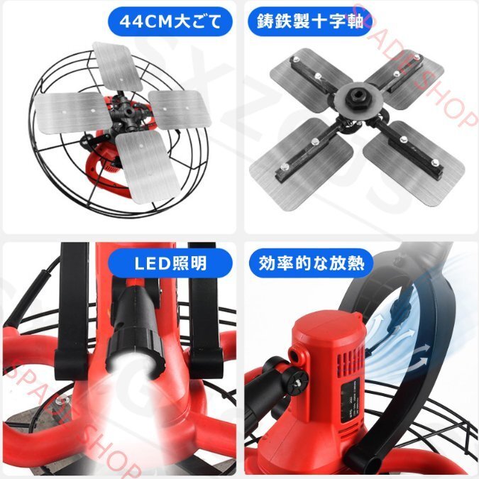 充電式トロウェル 電動トロウェル 110V 44cm大直径 コンクリート研磨機 電気サンダー セメント ポリッシャー モルタル 6速調整 電池 2 個