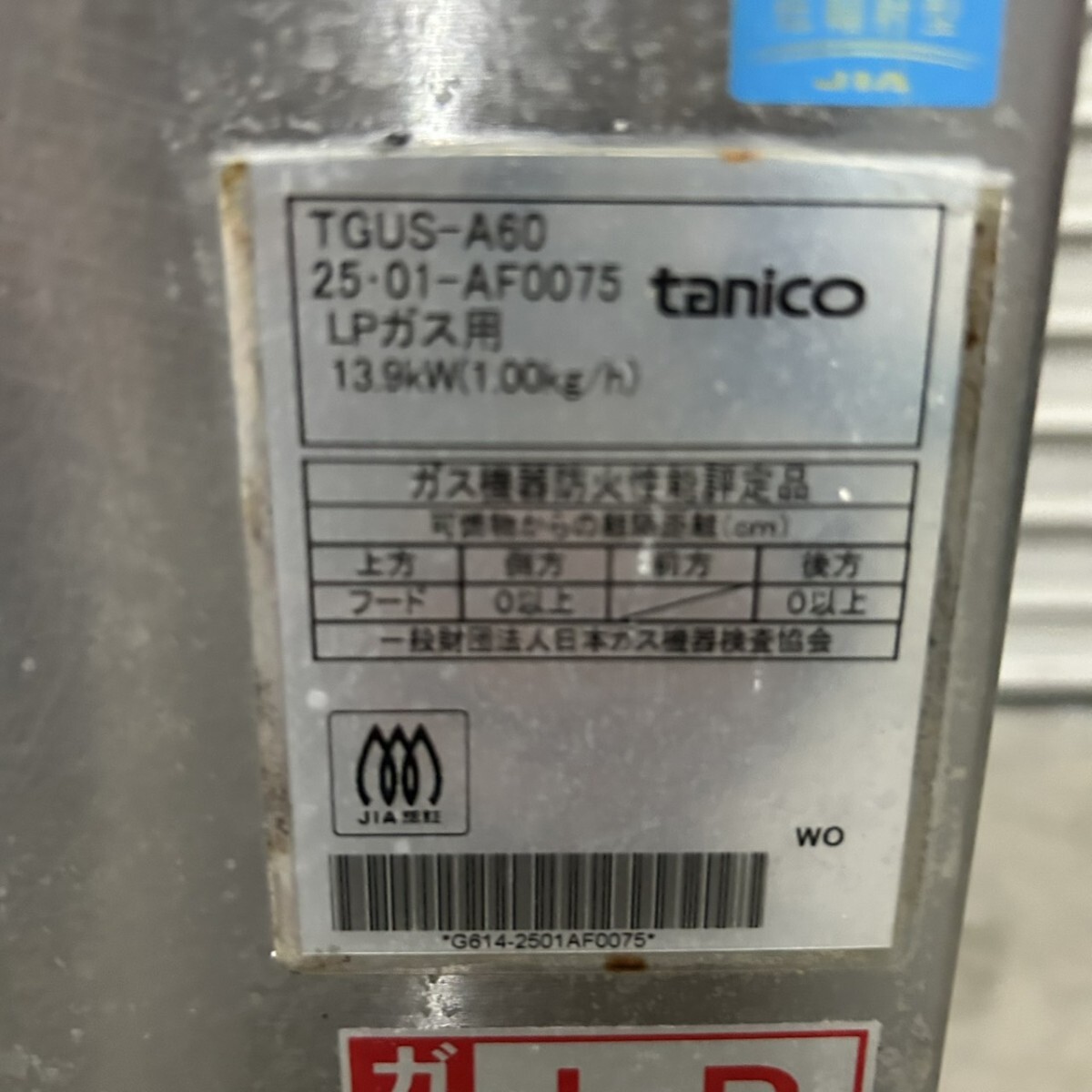 2025年製! tanico タニコー TGUS-A60 角型ゆで麺器 LPガス 省エネタイプ 蒼龍シリーズ 動作確認済み