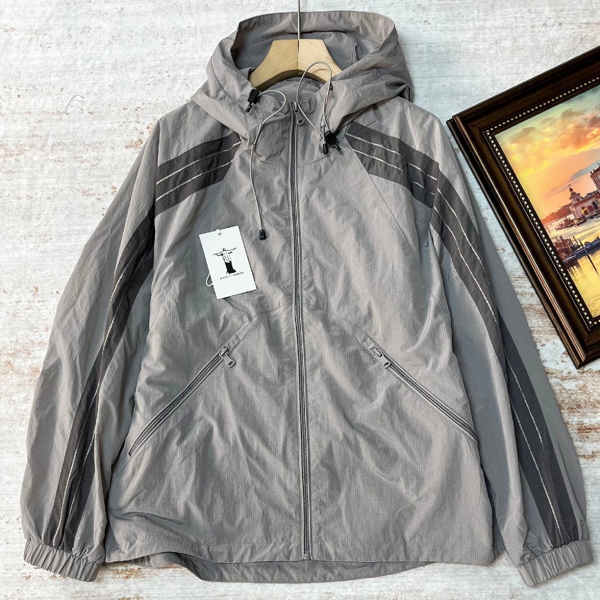 ジャケット ロンドン製造 防風 快適 撥水 ゆったり ストライプ柄 フード付き 日焼け止め ブルゾン アウトドア アウター 普段着 SIZE:XL