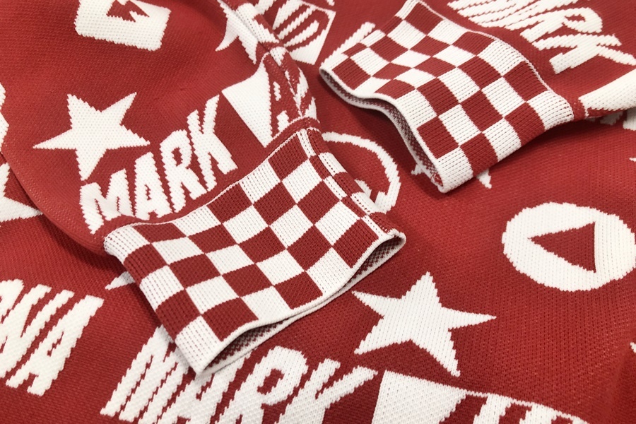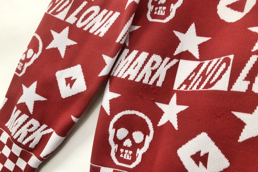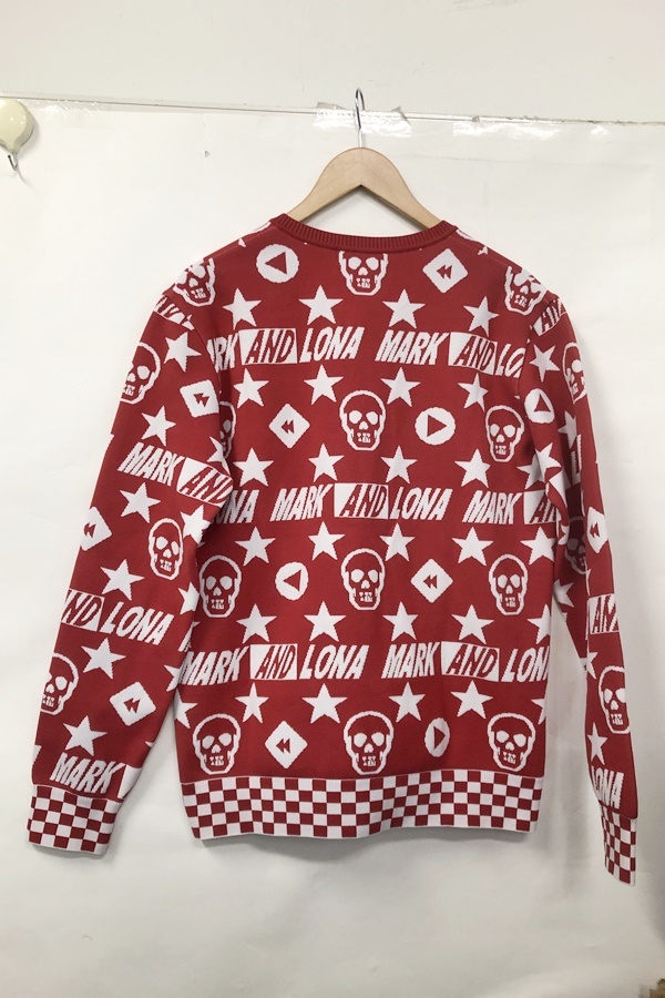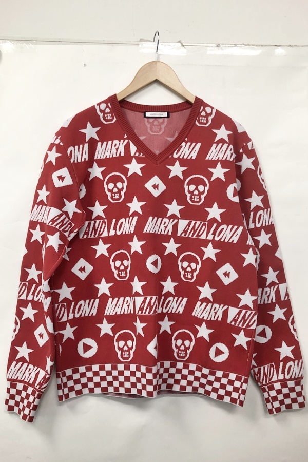 MARK & LONA マークアンドロナ スカルデザイン Vネックニットセーター レッドホワイト 「付属品」・・・ 写真のものがすべてになります。