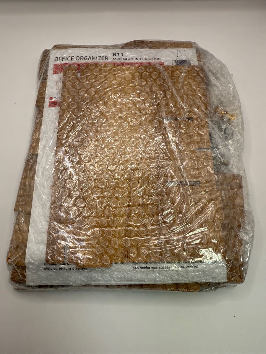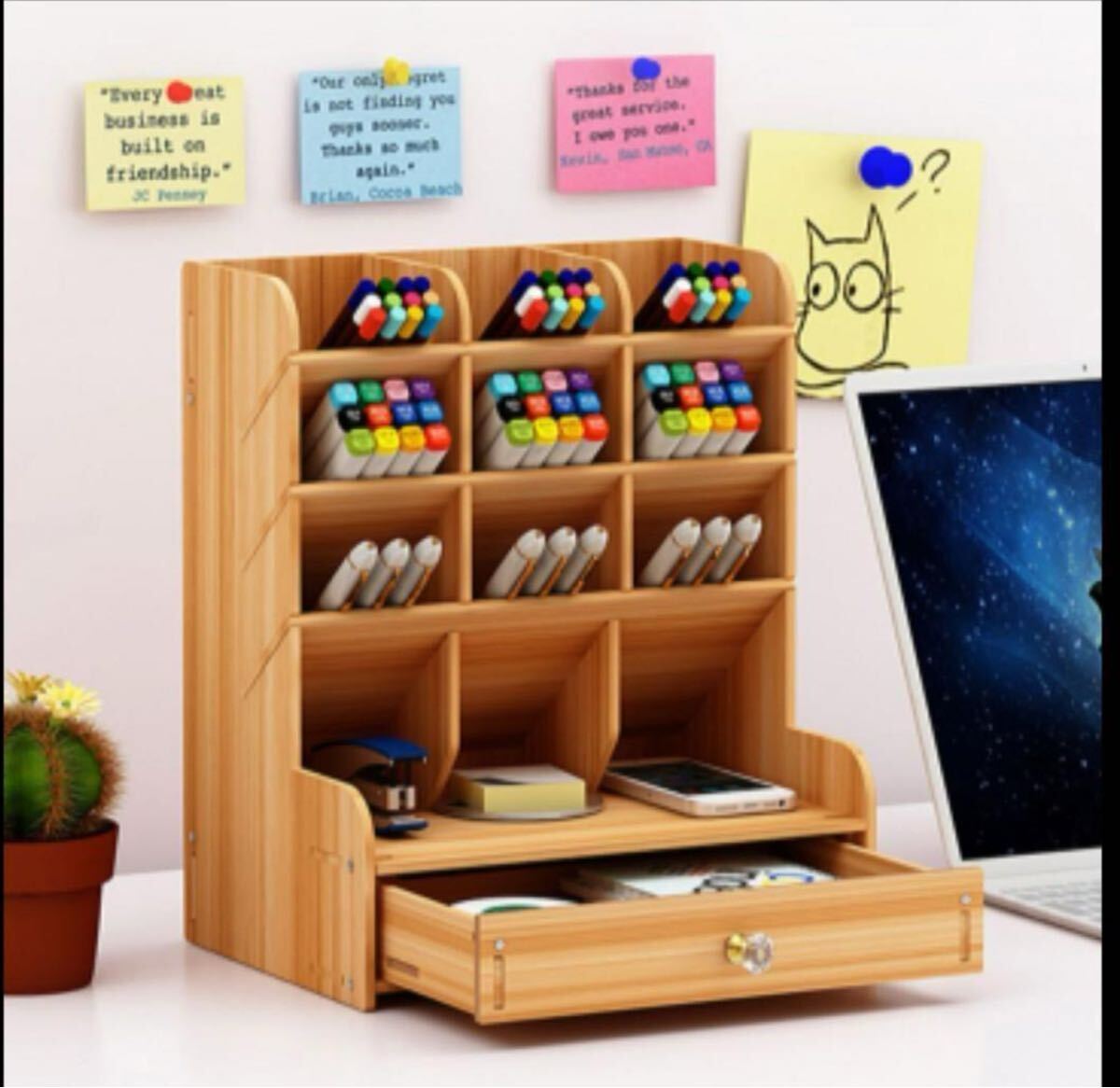 木製の組み立て式ペン立てで、12本のペンとマーカーを収納可能。引き出し付きで小物も整理できます。