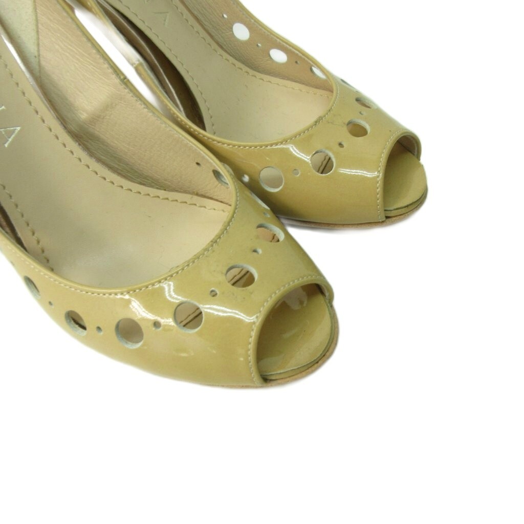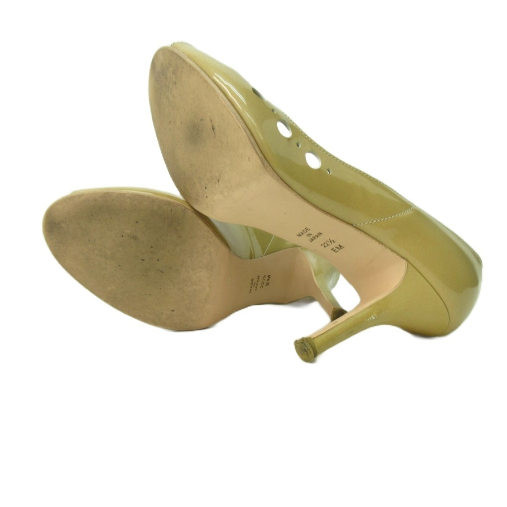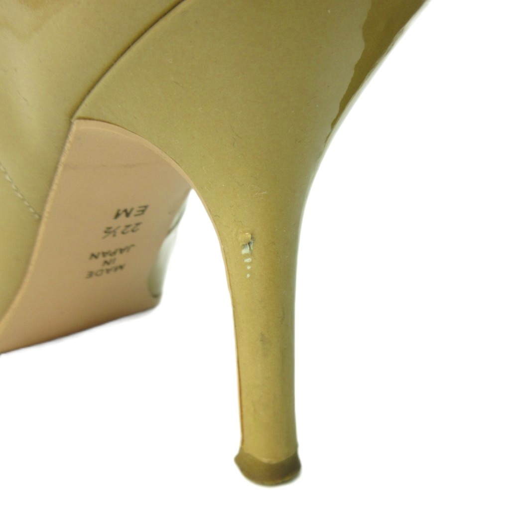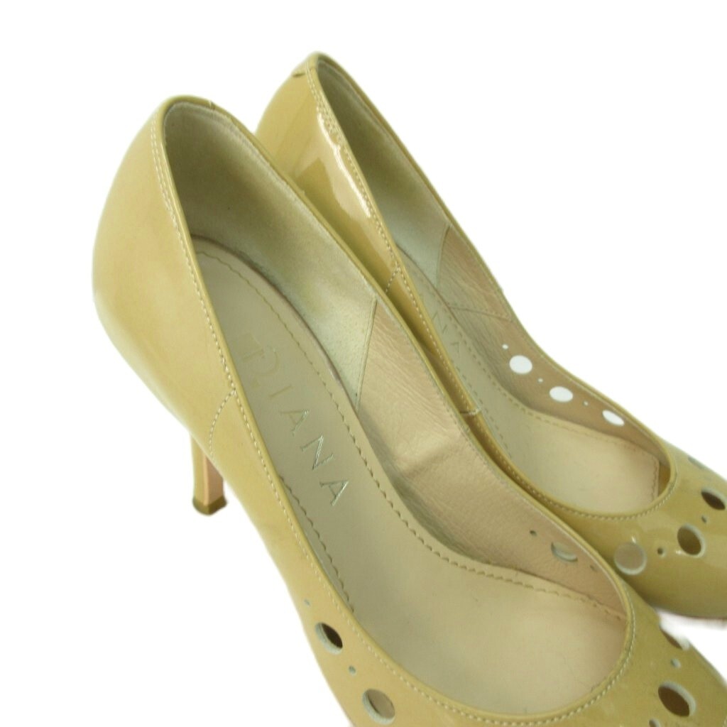 ダイアナ DIANA パンプス シューズ オープントゥ ハイヒール パンチング パテントレザー 22.5cm ベージュ 1018 ■YHS6 レディース