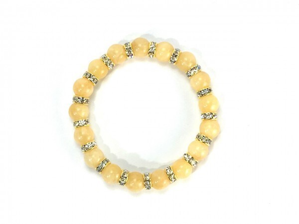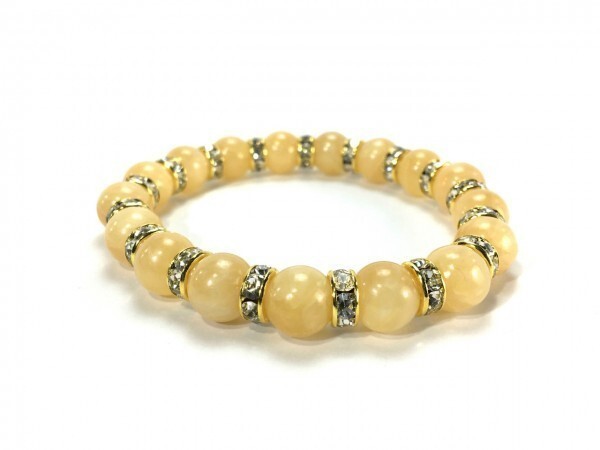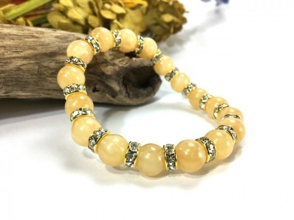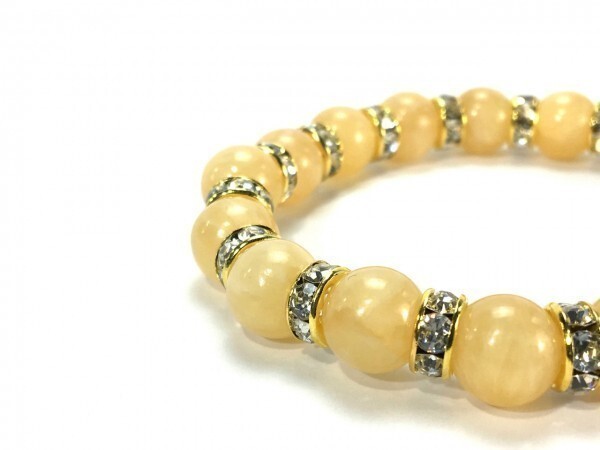 こちらは、10mm玉のアラゴナイトを使用したパワーストーンブレスレットです。間にはロンデルを挟み高級感あるブレスレットに仕上げています。石大きさは腕にも馴染みやすいように10mm玉を使用して、サイズは内径約18cmです。(サイズ調節も無料で承っています。サイズ変更の場合は落札後、取引ナビにてご一報くださいませ。) 数に限りがございますので気になる方はお早めにどうぞ。
