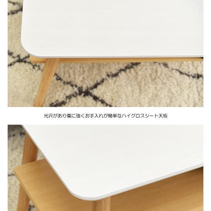 | 【材 質】 | 天板:木目柄ハイグロスシート/脚・フレーム:ラバーウッド無垢材/中棚:木目柄転写シート化粧板 | |