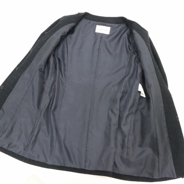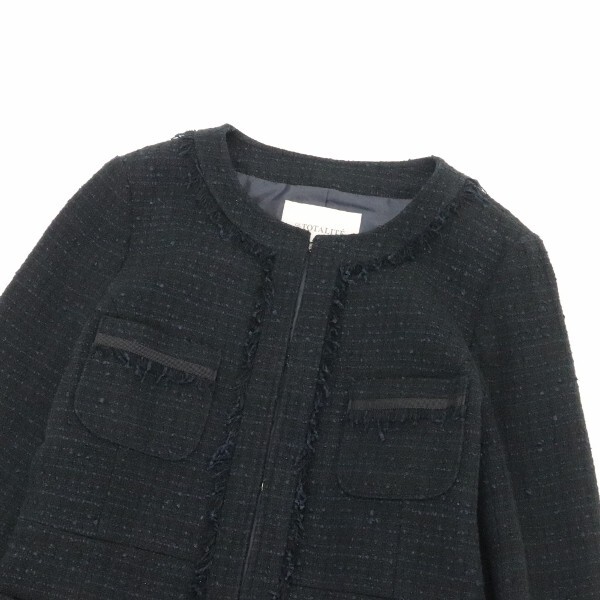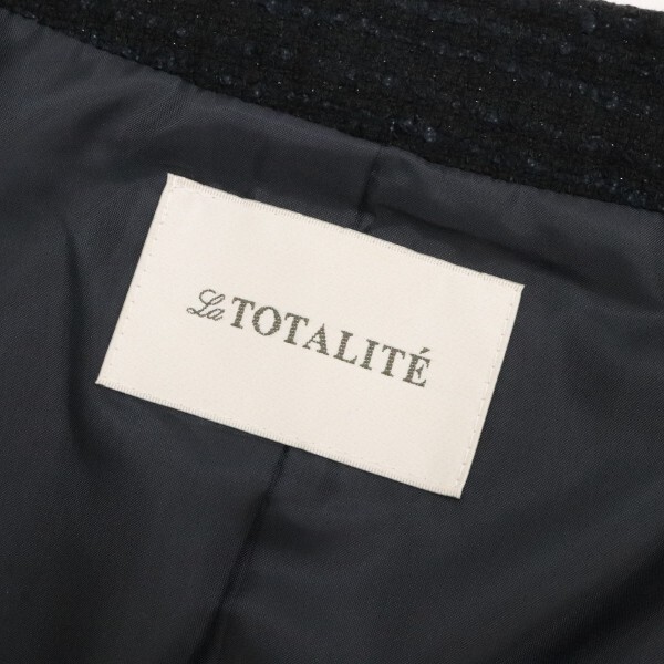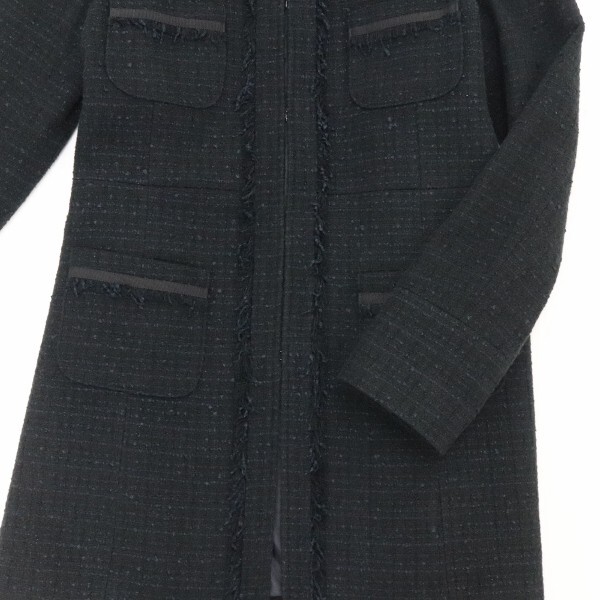 | 【KA391】美品◆La Totalite ラ トータリテ フリンジ ラメ コットン ツイード ノーカラー コート 紺 ネイビー | |