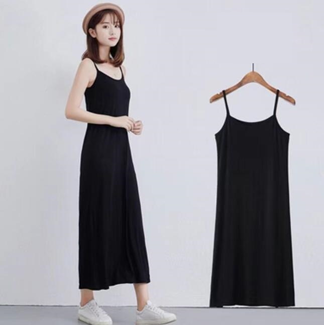 新作キャミワンピ 無地 選べる3タイプ 裾丈 大きいサイズ ロング L ブラック