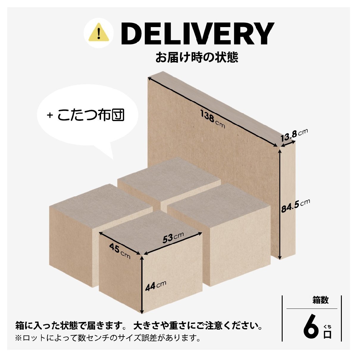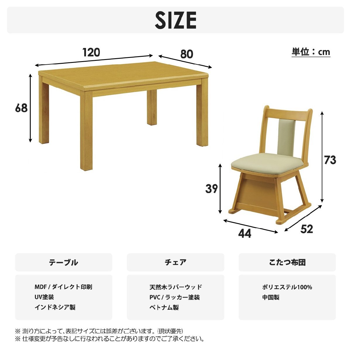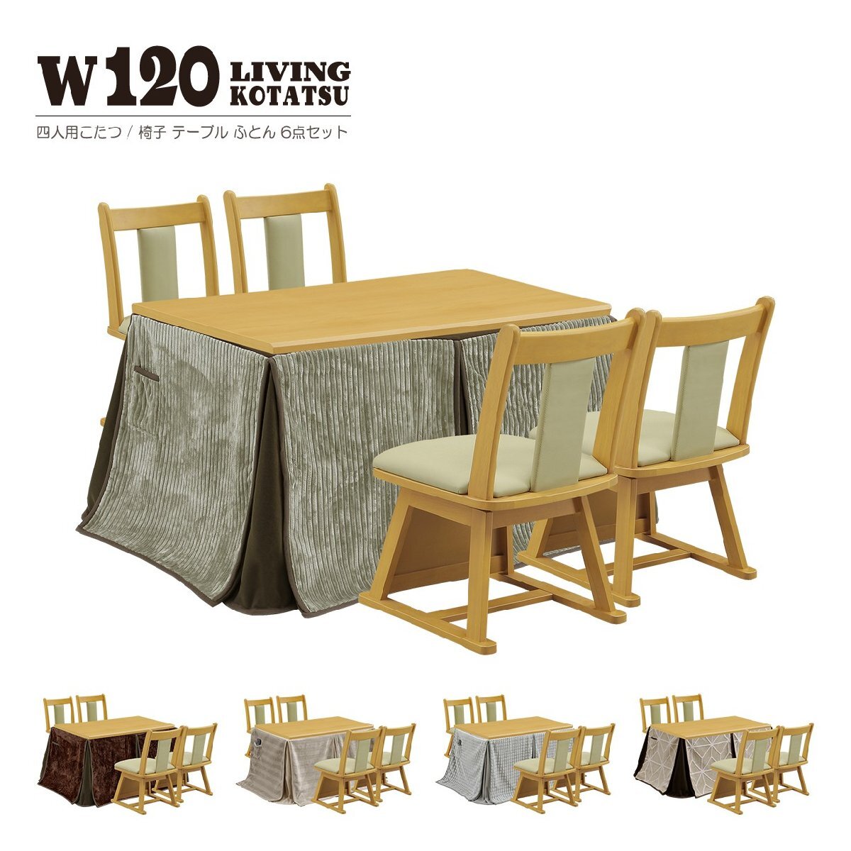 特  徴幅120cmの長方形こたつテーブルに、こたつ布団、チェア4脚の6点セット