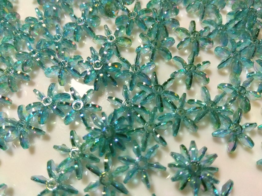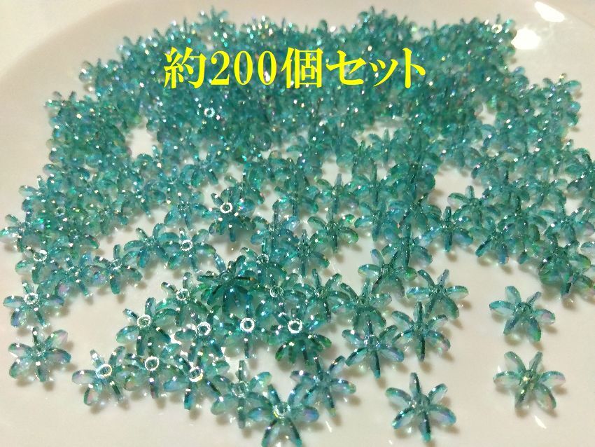 手芸用品さ01■アクリルビーズフラワーカットオーロラ約200個セット■水色系*ピアスアクセサリーパーツハンドメイド