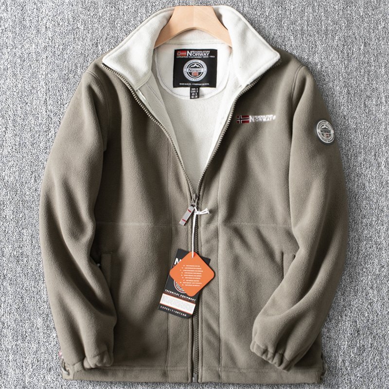 欧米サイズ 新品 国内未販売 ジャケット デザイナーズ フリース 暖かさ 裏ボア 厚手 メンズ シェニール 秋冬 フリース ブルゾン アウター カーキ T5167-XL