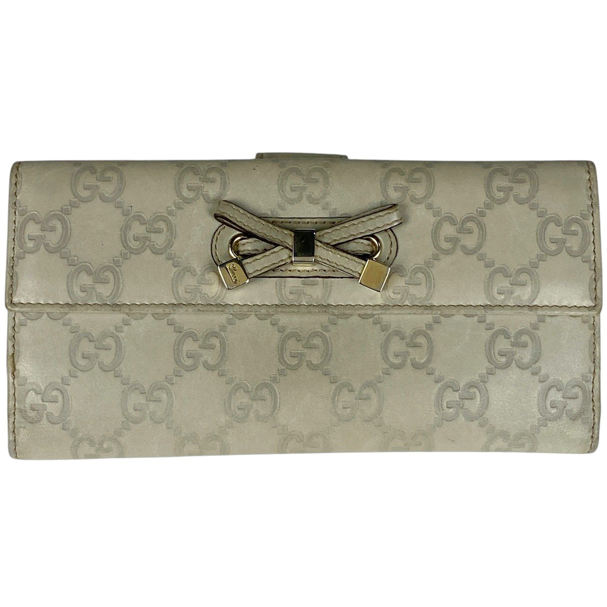 | グッチ GUCCI グッチシマ 二つ折り 長財布 GG柄 リボン 長財布 シマレザー アイボリー 167464 レディース 【中古】 |