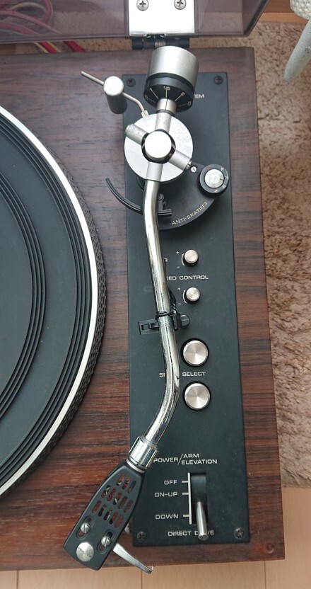 | 商品紹介 | ☆主な特徴 ・ローズウッド仕上げのダイレクトドライブ方式を採用したレコードプレイヤー。 ・ターンテーブルを直接駆動するダイレクトドライブ方式により、伝達系からくる回転ムラやモーターの高速回転による振動を抑えています。また、電子回路の働きにより一度設定された回転数は自動的にコントロールされ、周辺温度や電源電圧の変動で狂いが生じるのを防いでいます。さらに、モーターの駆動電源は内蔵の定電圧回路によって直流に変換されているため、電源周波数に関係なく回転数が一定となっています。 ・トーンアーム部は軸受部に精密な研磨仕上げを行うことでトレース能力を高めています。 さらに、トーンアーム自体の重心が低くなるように設計してあるため、音溝が複雑な4chレコードなどのトレース能力を向上しています。 ・キャビネット内に補強を施し、インシュレーターに特殊ゴムを用いることで、内部振動や外部振動による悪影響を防いでいます。 ・レコードや針先を傷めるのを防ぐため、アームエレベーション機構を搭載しており、ターンテーブル回転のon-off操作レバーと連動させています。 ・純電子式の速度切換えを採用しており、さらに±2%の範囲内で速度の微調整が可能なストロボスコープを搭載しています。 ☆主な仕様 ・モーター : ブラシレスDCサーボモーター ・駆動方式 : ダイレクトドライブ ・ターンテーブル : 31cm径アルミ合金ダイキャスト製 ・回転数 : 33・1/3、45rpm(微調整可能) ・回転数微調整範囲 : ±2%(各回転数独立調整) ・回転ムラ : 0.05%以下(WRMS) ・S/N : 55dB以上 ・トーンアーム形式 : スタティックバランスS字型パイプアーム ・カートリッジ : MM型(PC-110) ・サイズ : 幅430x高さ171x奥行338mm ・重量 : 6.5kg ☆同梱品 Pioneer レコードプレイヤー PL-1100 ☆ カートリッジ付本体のみ |