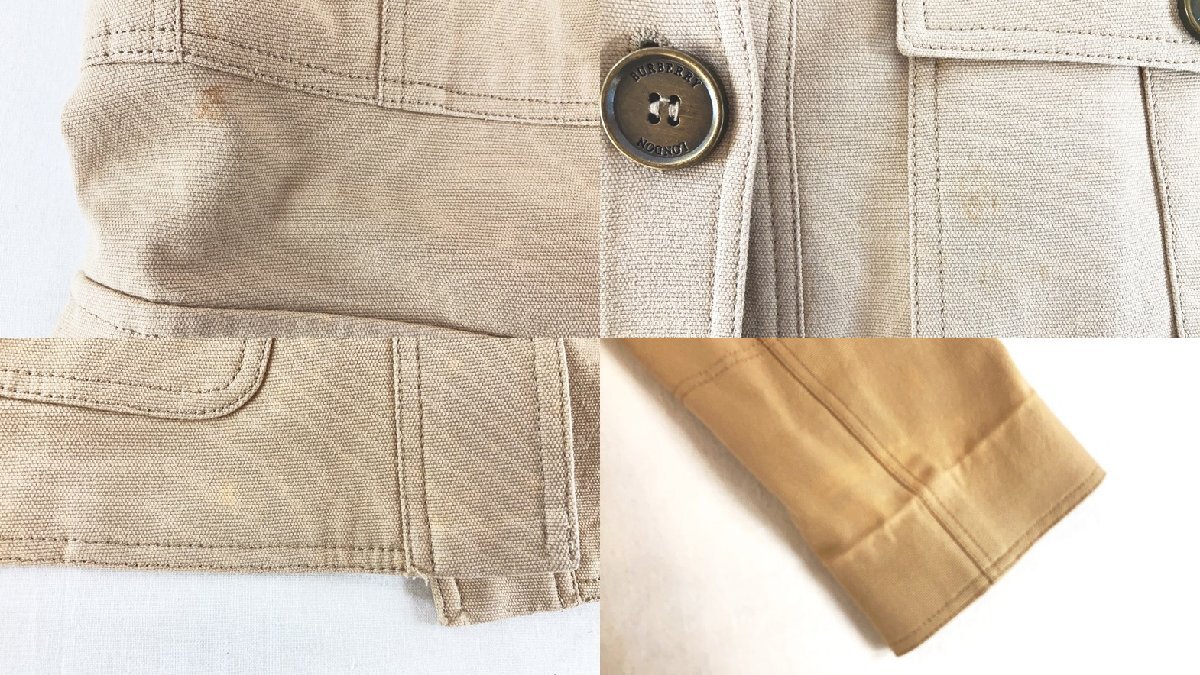少々の着用感・経年感があります。左前ポケット付近・左袖口付近・右前ポケット上付近・右前裾付近等にシミ・色落ち・折れジワ等少々のダメージがあります(画像あり)。
