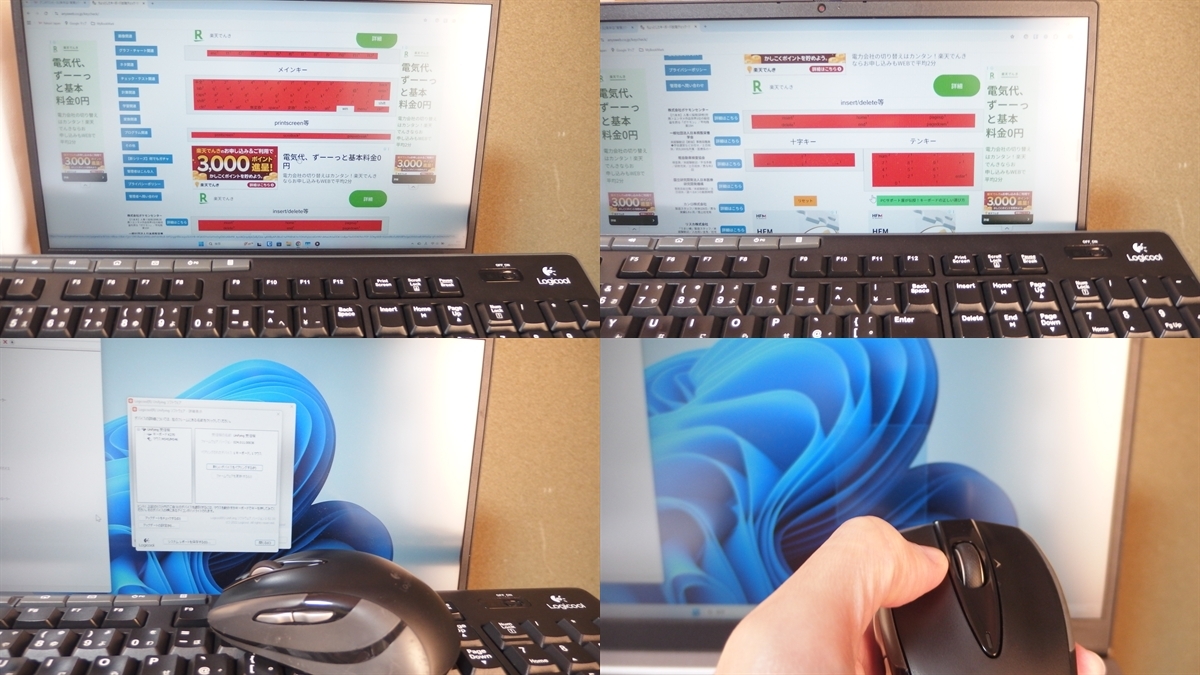 ・動作確認は、unifyingレシーバー(USB)に接続し、キーボードのキー入力とマウスの操作が行えました。