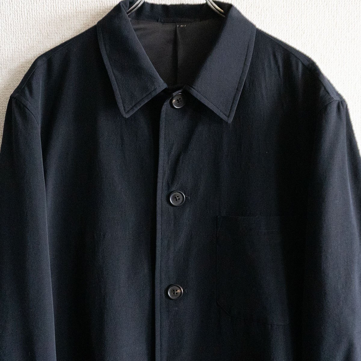 ウール生地のジャケットです。ゆったりとしたワイドなシルエットです。お探しの方や気になる方は是非。