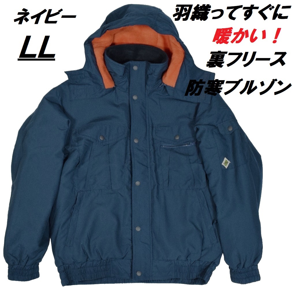 裏フリース 68900 防寒ブルゾン LL 紺 ジャンパー 撥水加工 アウトドア ウィンタースポーツ 屋外作業 複数収納 作業服